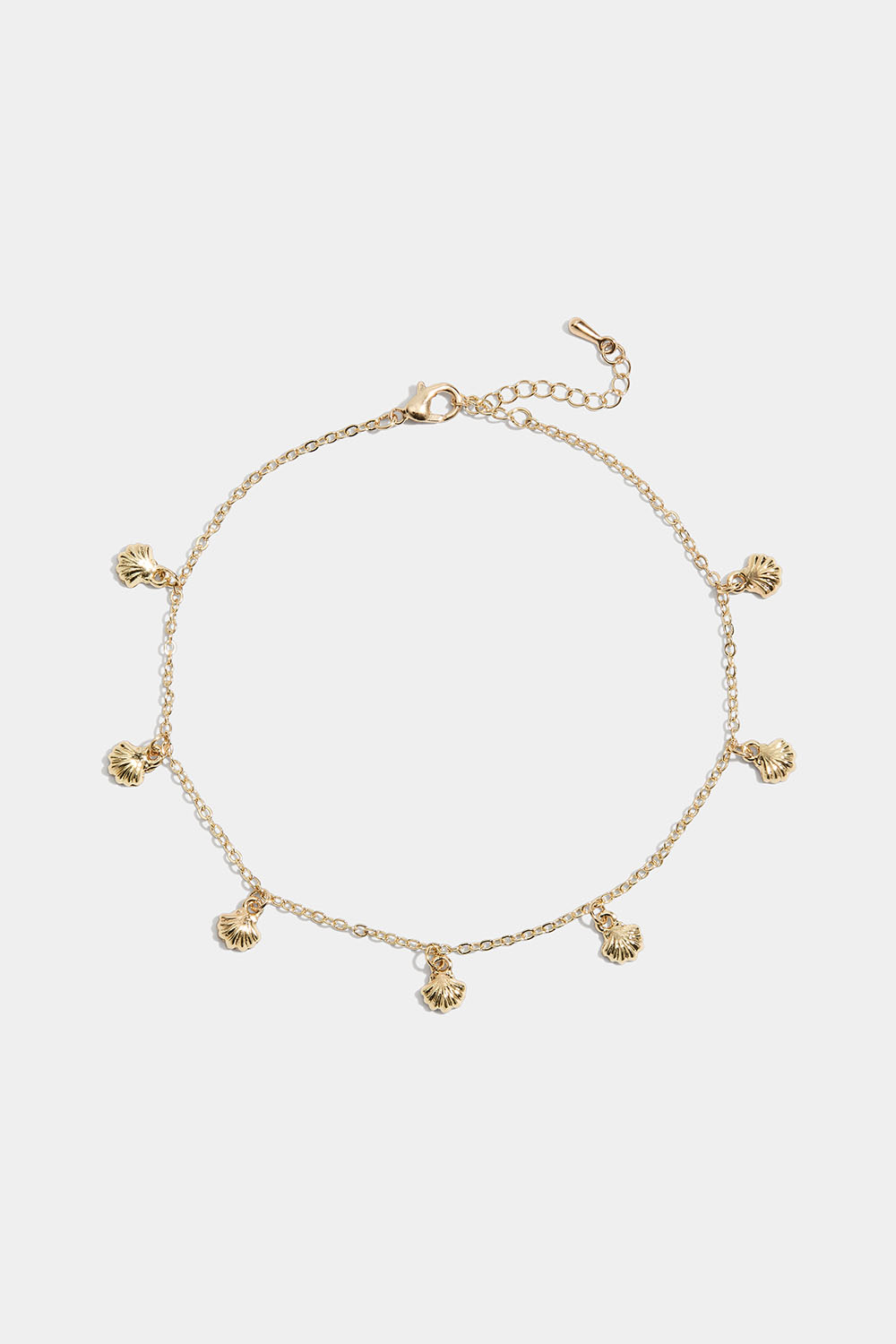Ankelkæde med enkel kæde dekoreret med små charms af muslingeskaller.