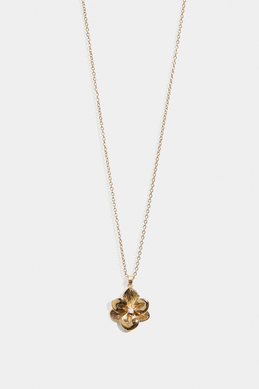 Guldfarvet halskæde med blomst med glassten