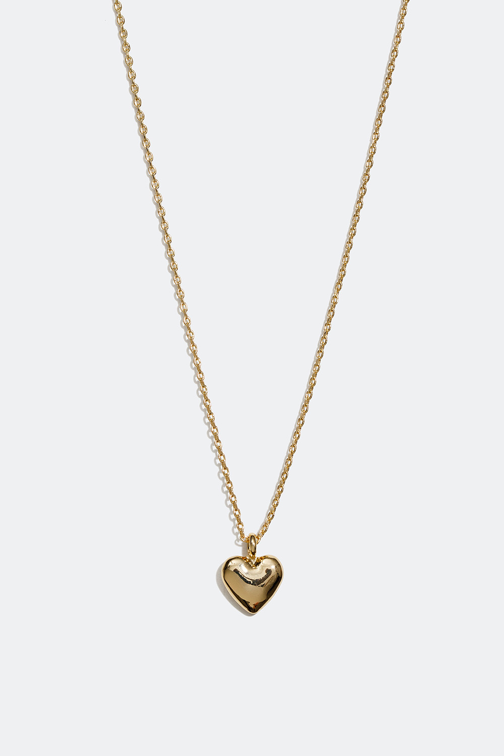 Halskæde i guldfarvet metal med en tynd kæde og et lille hjerte som vedhæng. En enkel og stilfuld halskæde med et klassisk vedhæng, der passer til alle lejligheder. Perfekt at bruge alene eller sammen med andre halskæder, så du opnår et lag-på-lag-look.