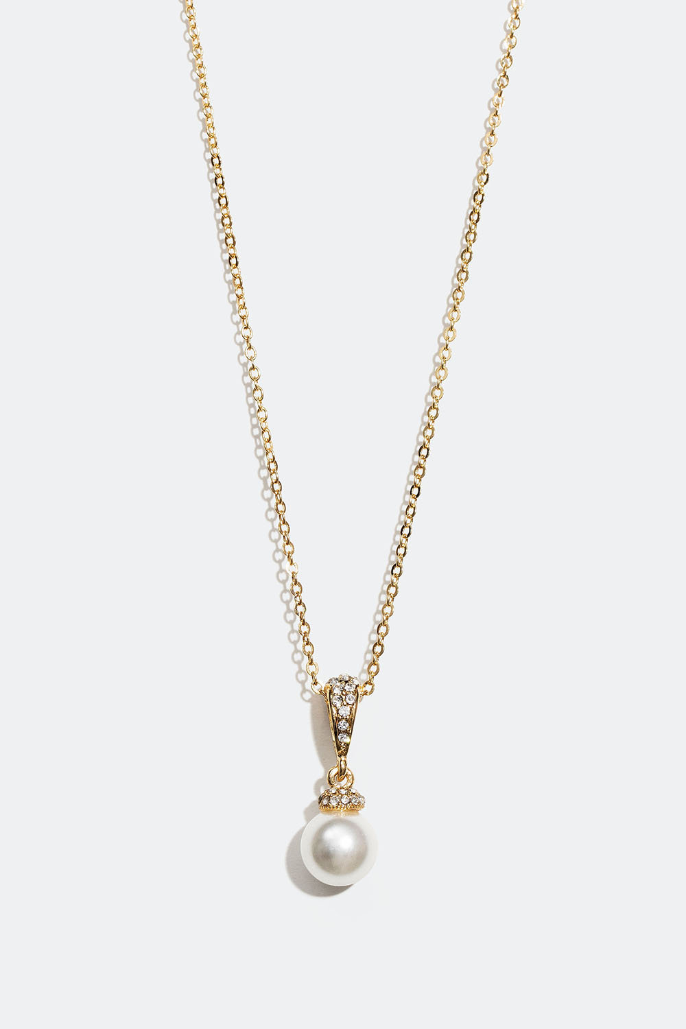 Halskæde i guldfarvet metal med kæde og vedhæng med glasperle og glassten. En stilren halskæde med glitrende detaljer.