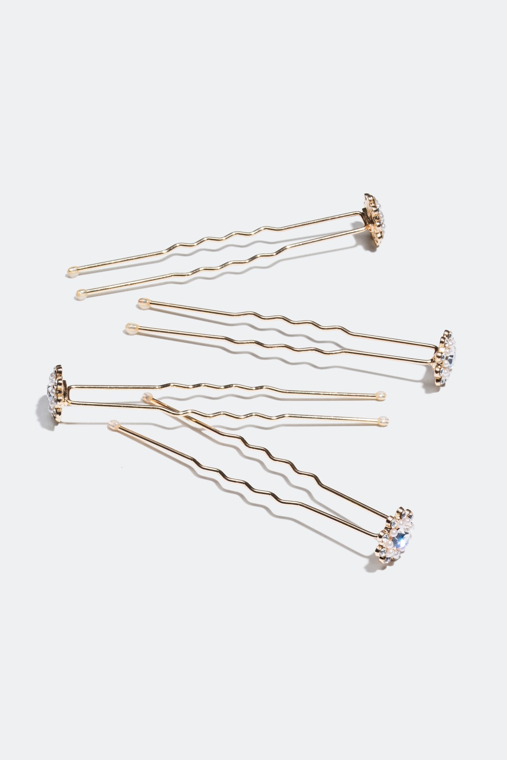 4-pak guldfarvet hårnåle dekoreret med perle og sten.