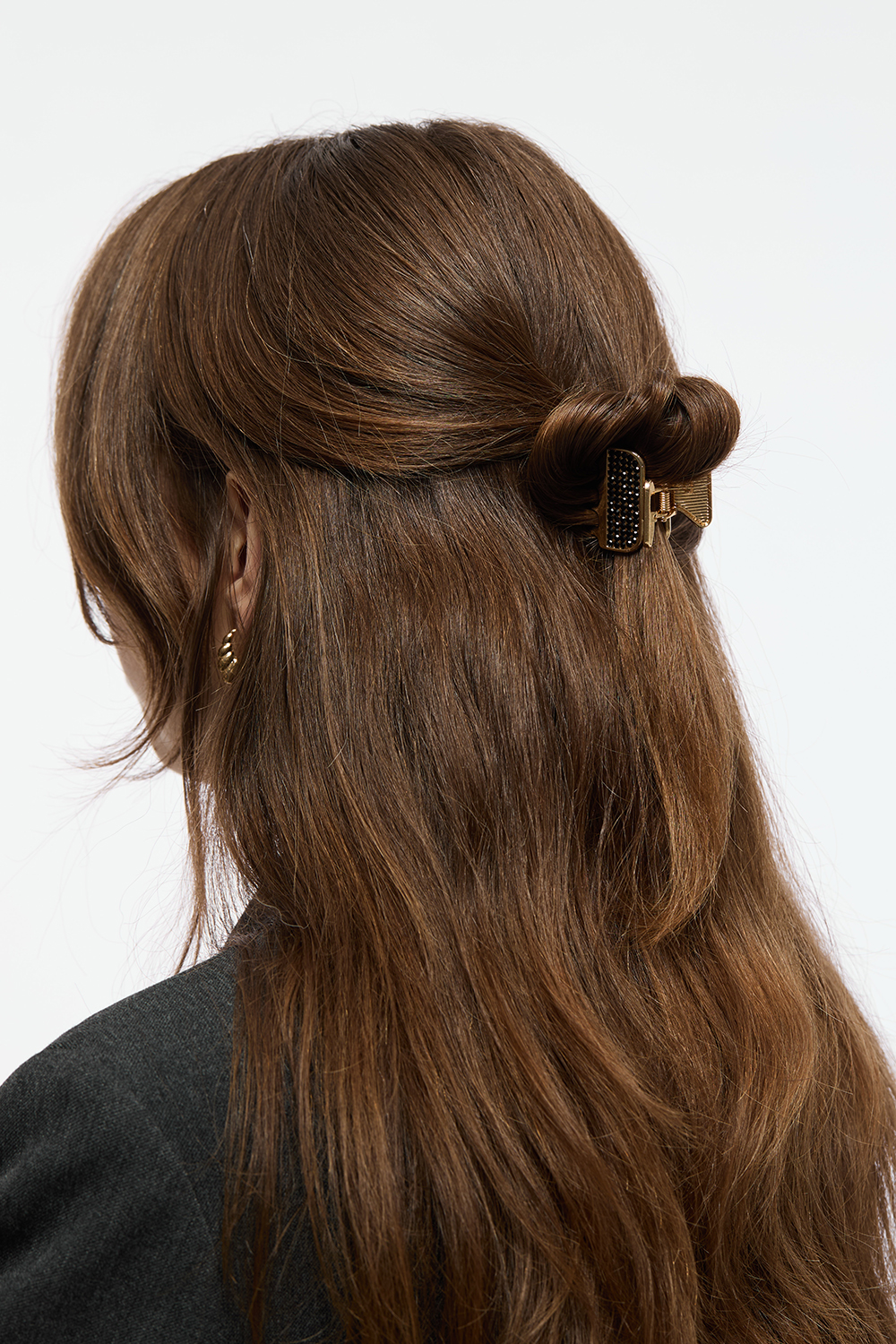 Guldfarvet hårspænde med sorte rhinsten i gruppen Håraccessories / Spænder & klemmer / Hårklemmer hos Glitter (331001772000)