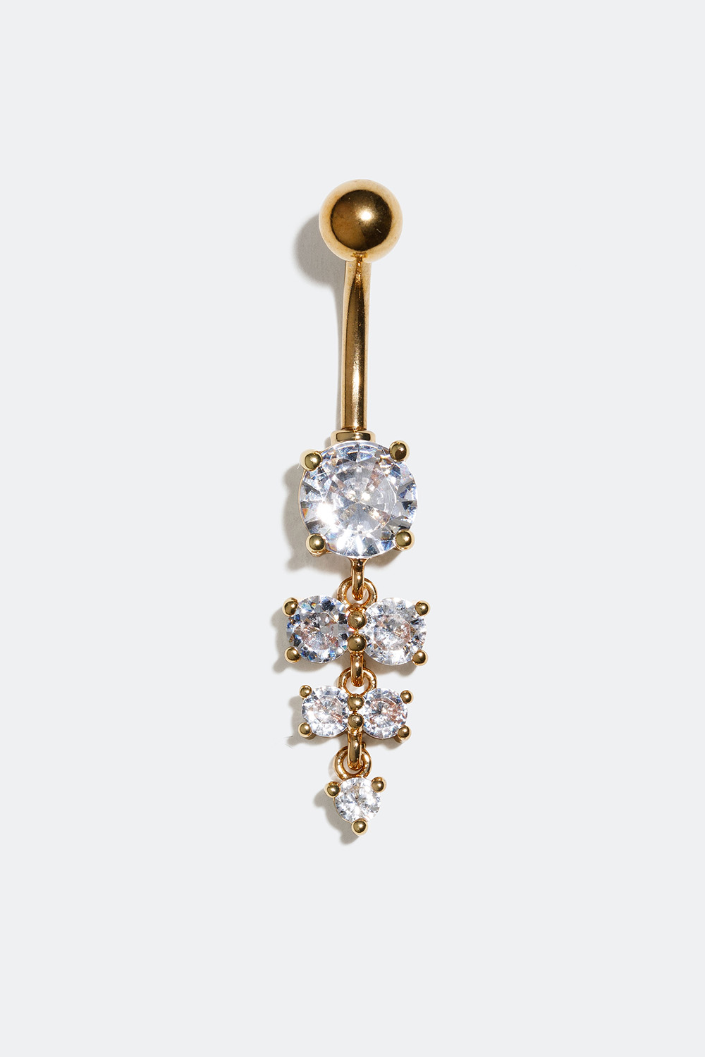 Guldfarvet navlepiercing med vedhæng af runde Cubic Zirconia sten i gruppen Smykker / Piercinger / Navlepiercinger hos Glitter (255000440110)