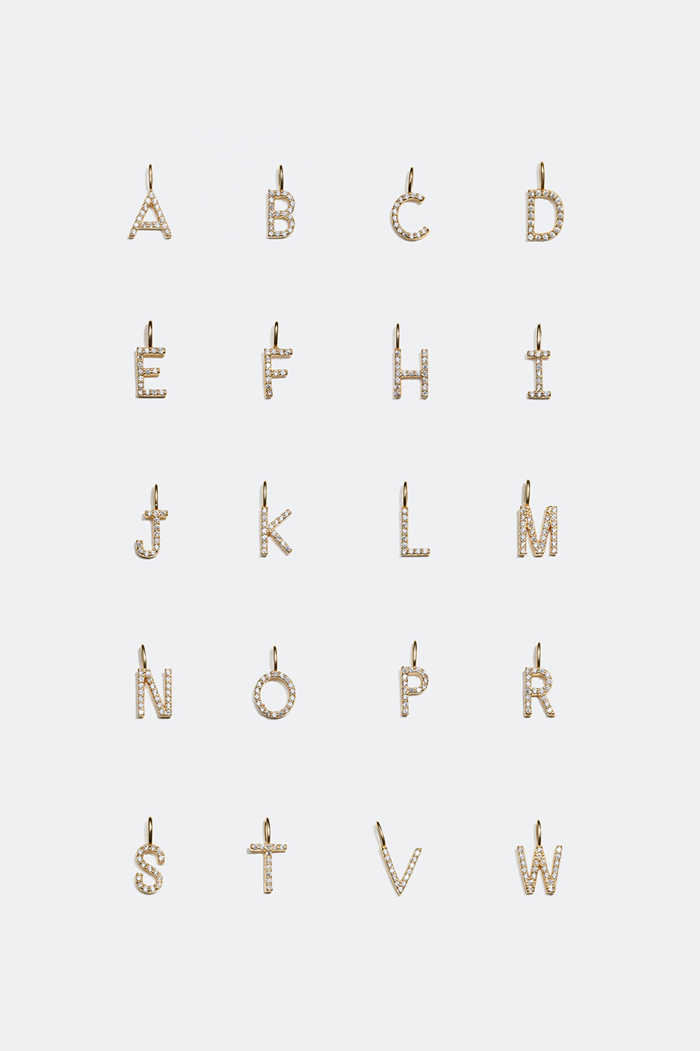 Lille stilren charm med form som et bogstav. Charmen er fremstillet af ægte sølv med 18 karat guldplet og dekoreret med små glitrende sten i kubisk zirkonia. Vælg bogstaver i størrelsesmenuen, og sæt dem sammen med en kæde i ægte sølv. Du kan kombinere vores bogstavsmykker og gøre dit smykke mere personligt ved at skabe navne, ord eller initialer.