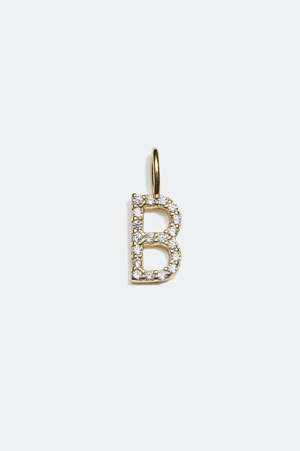 Lille stilren charm med form som et bogstav. Charmen er fremstillet af ægte sølv med 18 karat guldplet og dekoreret med små glitrende sten i kubisk zirkonia. Vælg bogstaver i størrelsesmenuen, og sæt dem sammen med en kæde i ægte sølv. Du kan kombinere vores bogstavsmykker og gøre dit smykke mere personligt ved at skabe navne, ord eller initialer.
