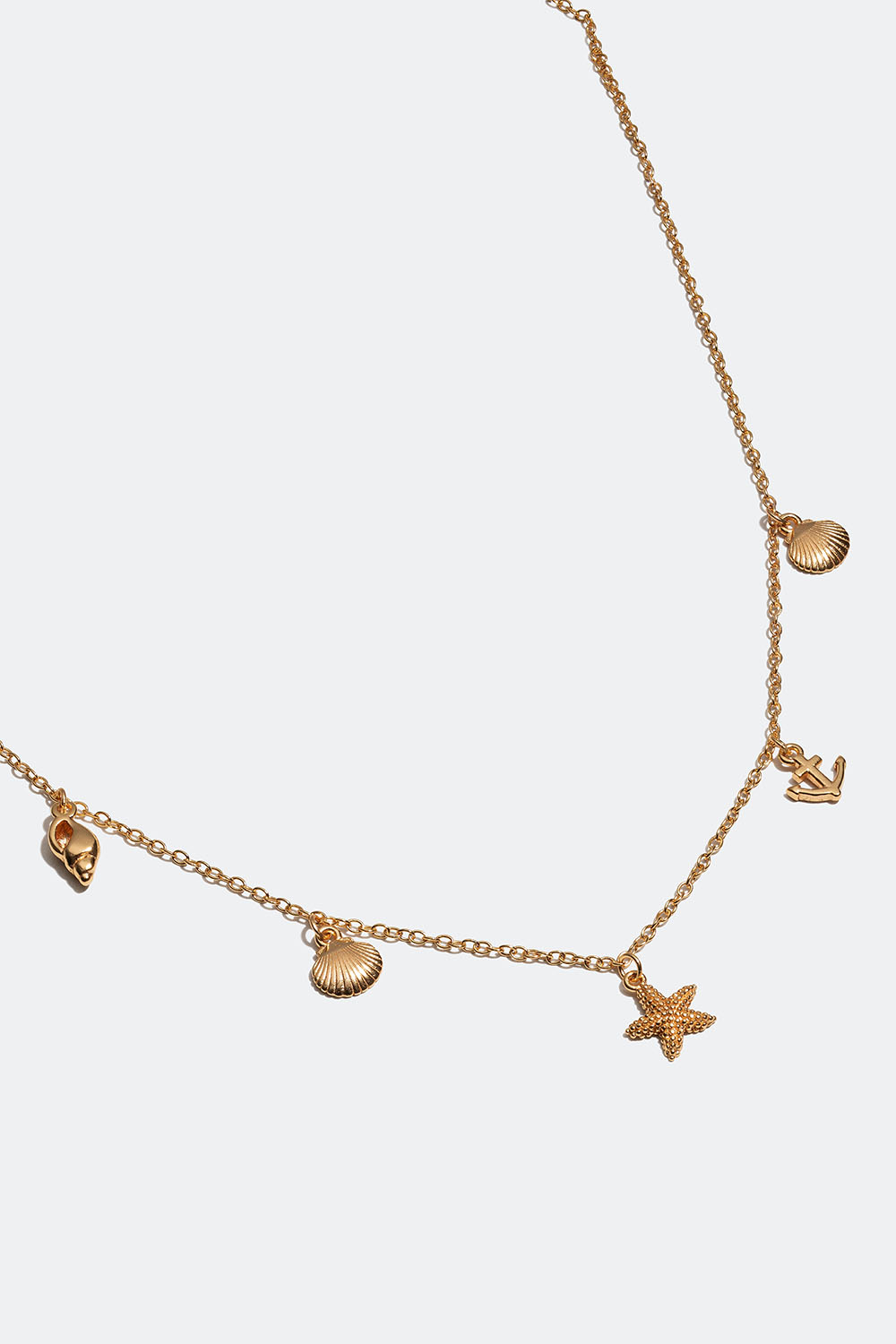 Halskæde i 18 karat forgyldt ægte sølv med vedhæng af skaller, søstjerner og anker.