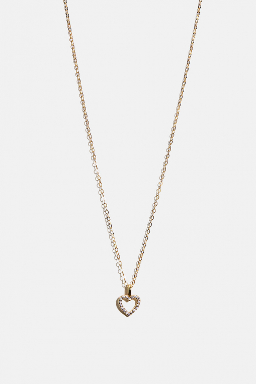 Halskæde i 18k forgyldt ægte sølv med en hængende hjerte dekoreret med små sten i kubisk zirkonia.