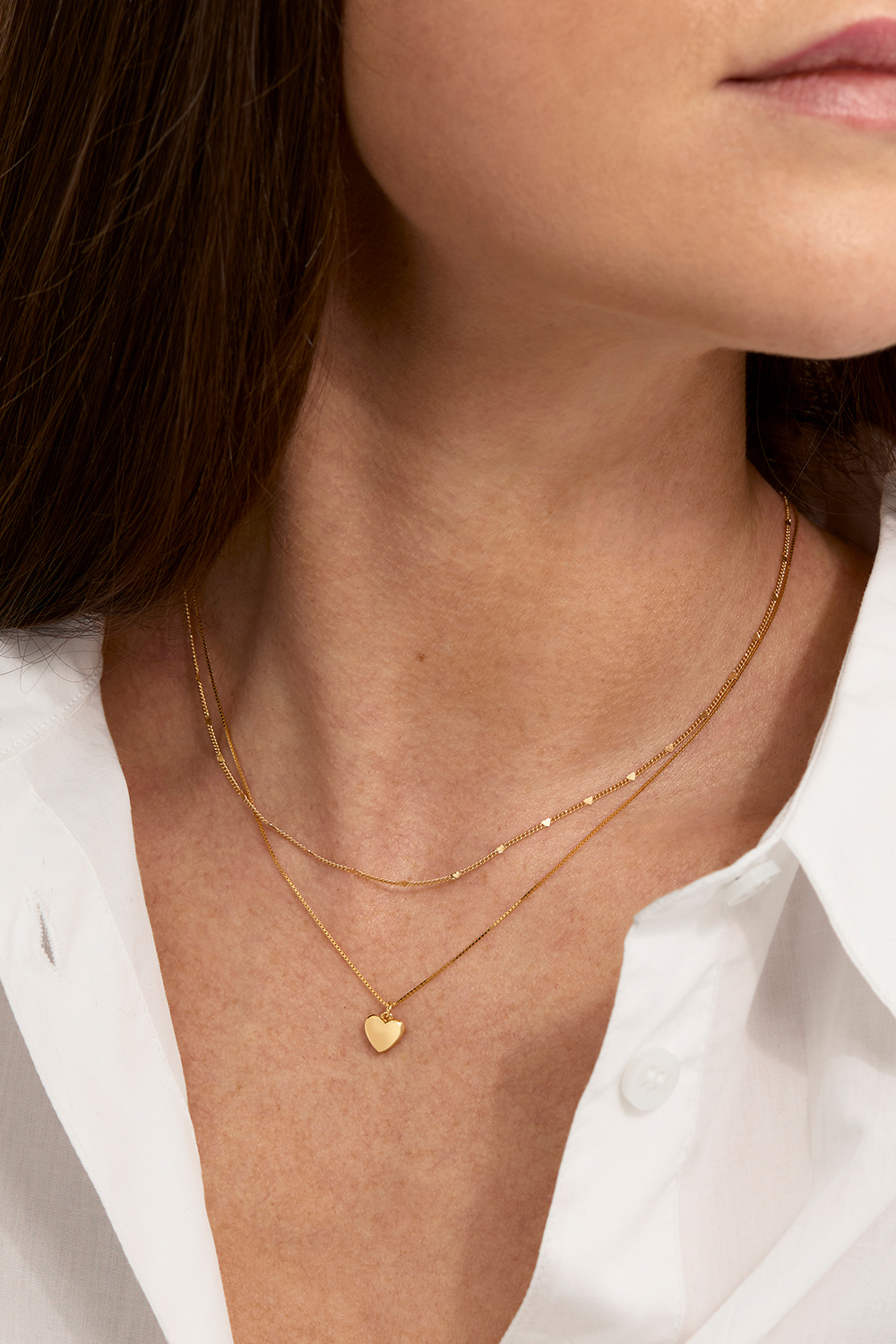 Tynd halskæde i 18k forgyldt ægte sølv med hængende fyldt hjerte.
