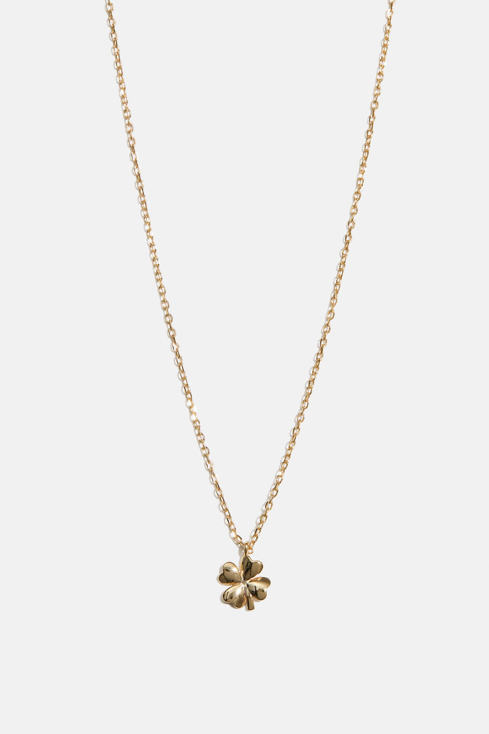 Halskæde i 18k guldbelagt ægte sølv med en smal kæde og et firkløvervedhæng.