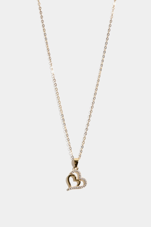 Halskæde i 18k guldpletteret ægte sølv med dobbekt hjerte og kubisk zirkonia i gruppen Smykker / Halskæder / Halskæder med vedhæng hos Glitter (554001442002)