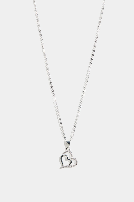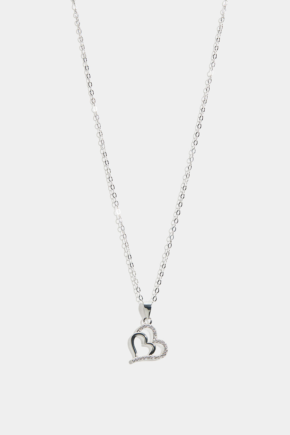 Halskæde i ægte sølv med dobbelt hjerte og kubisk zirkonia