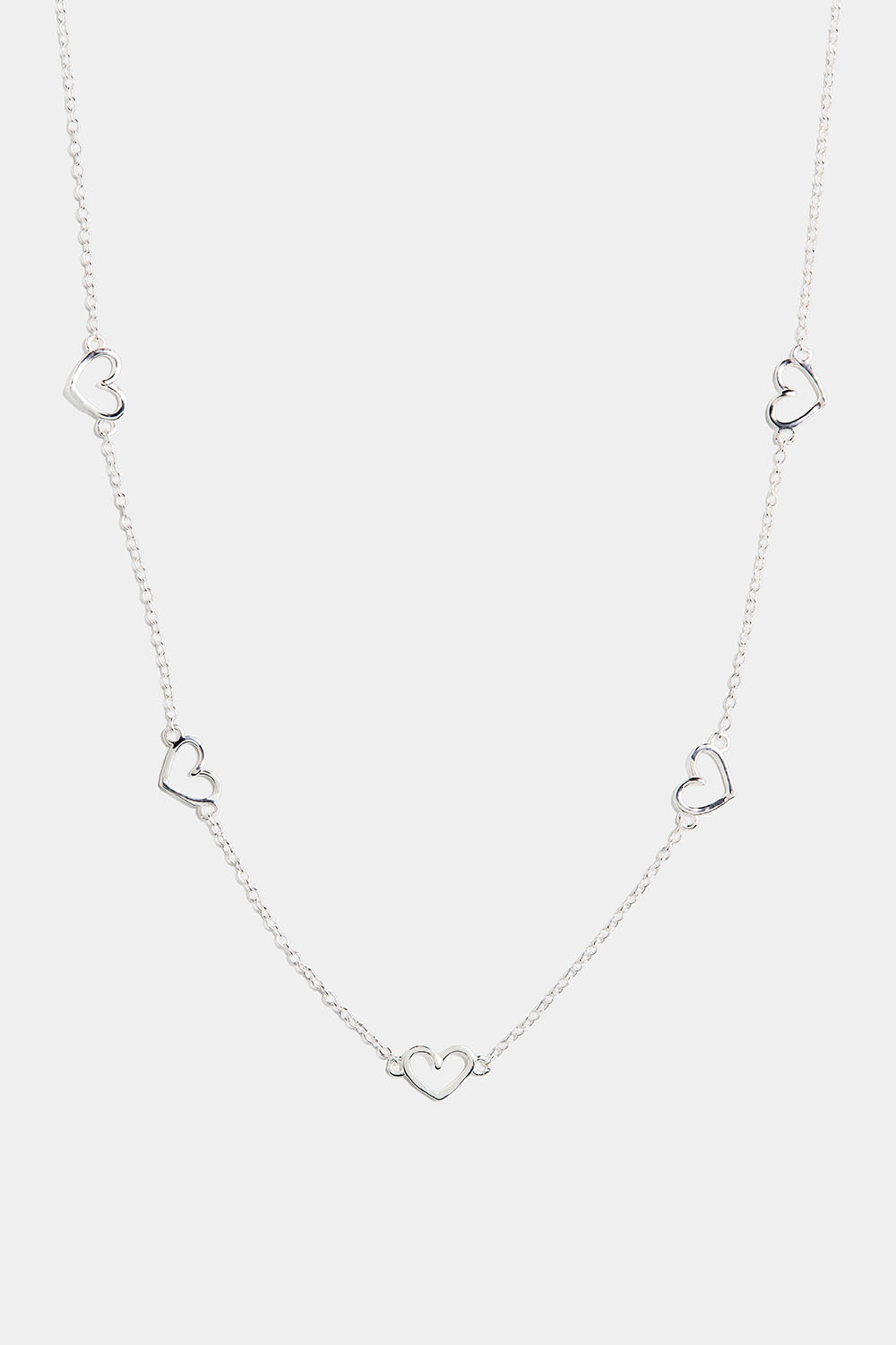 Smal halskæde i ægte sølv med fem hjerter.