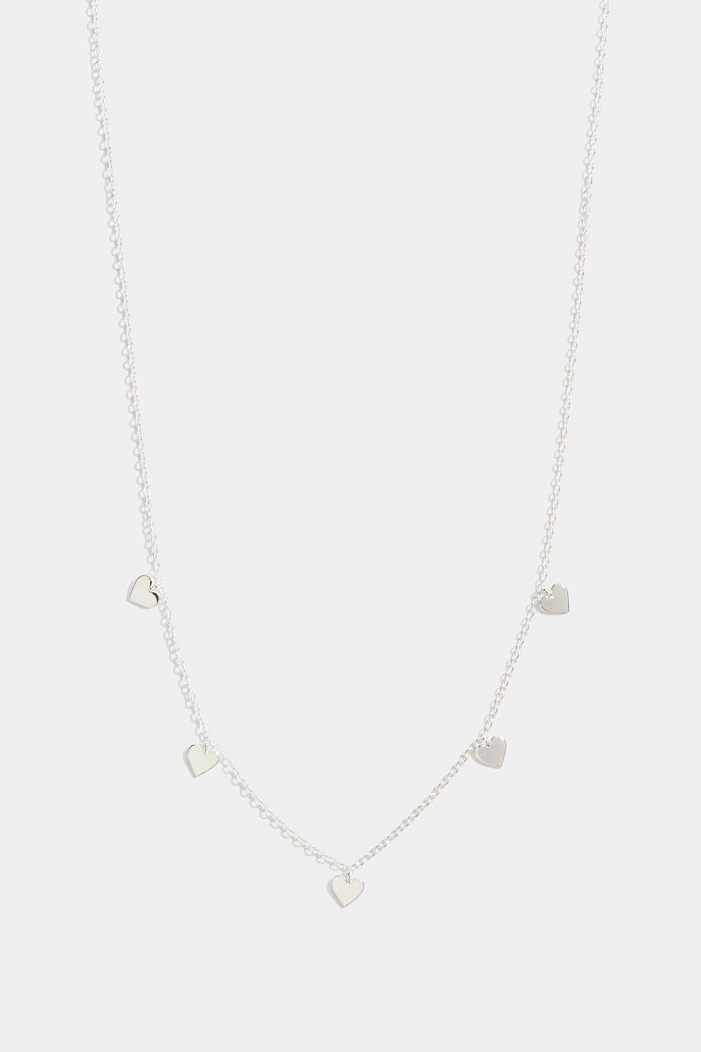 Tynd halskæde i ægte sølv med fem, hængende, fyldte hjerter.