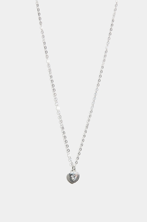 Halskæde i ægte sølv med hjerteformet kubisk zirkonia