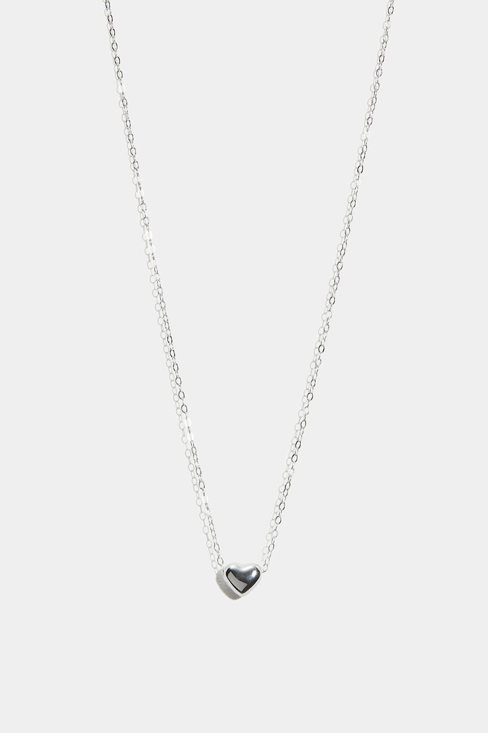 Halskæde i ægte sølv med tynd kæde og hjerteformet vedhæng.