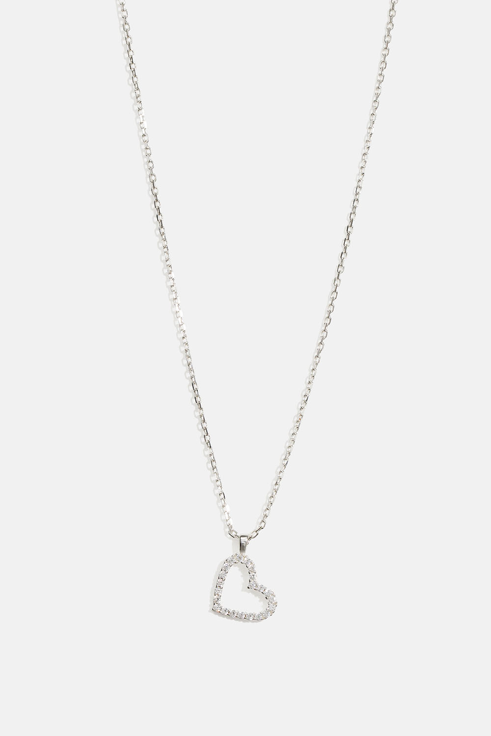 Halskæde i ægte sølv med hjertevedhæng dekoreret med små, hvide kubisk zirkonia
