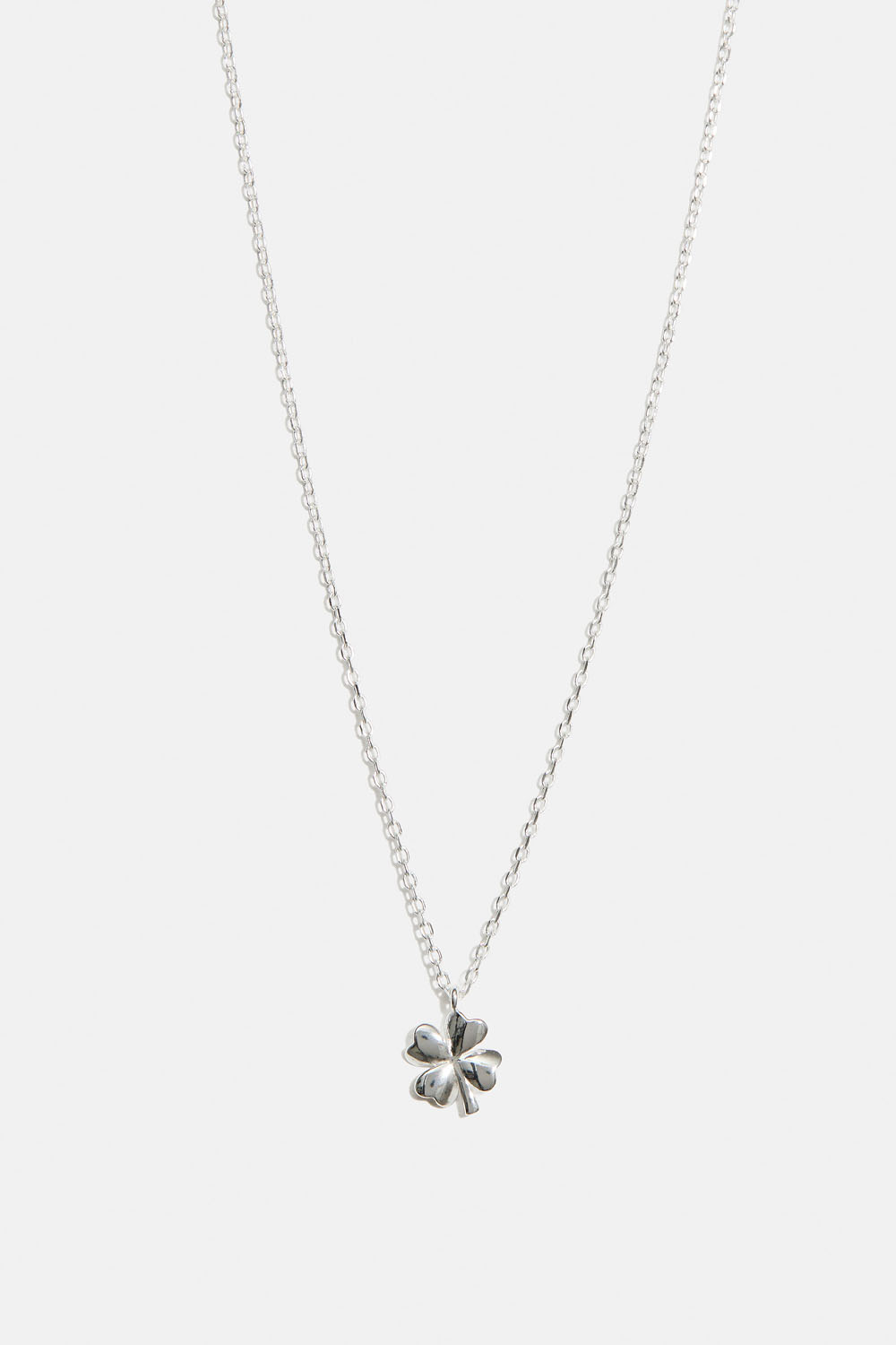 Halskæde i ægte sølv med en smal kæde og et firkløvervedhæng.