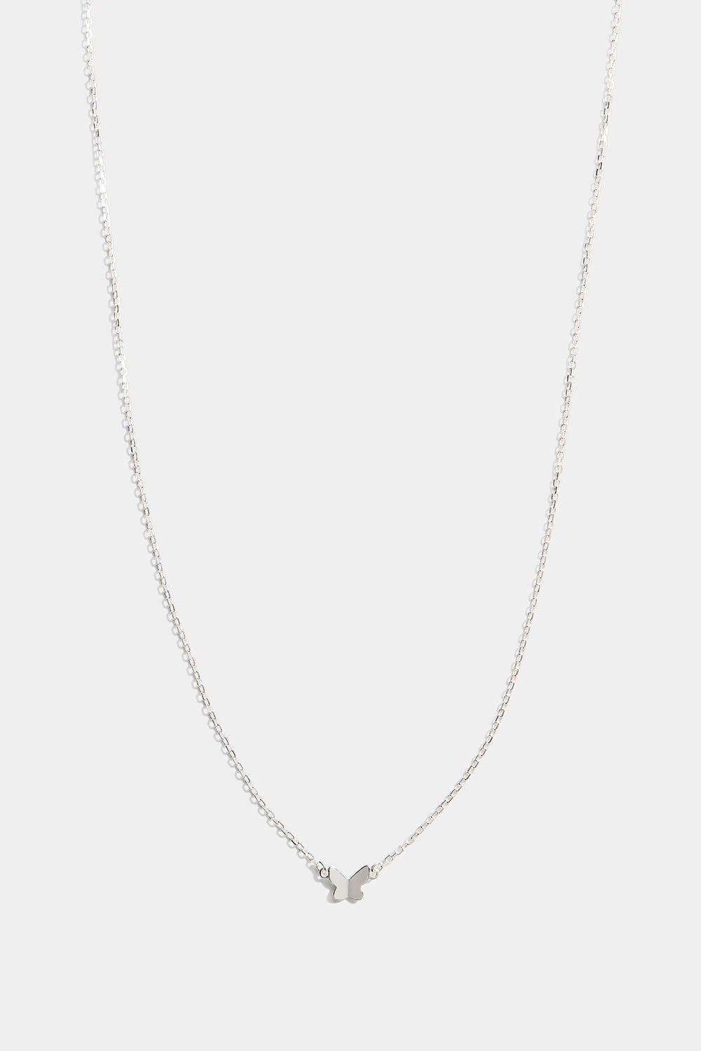 Halskæde i ægte sølv med en lille sommerfugl i midten.