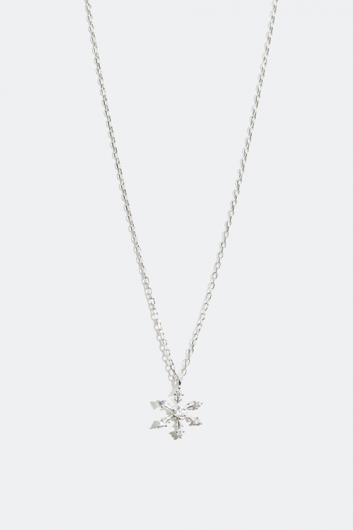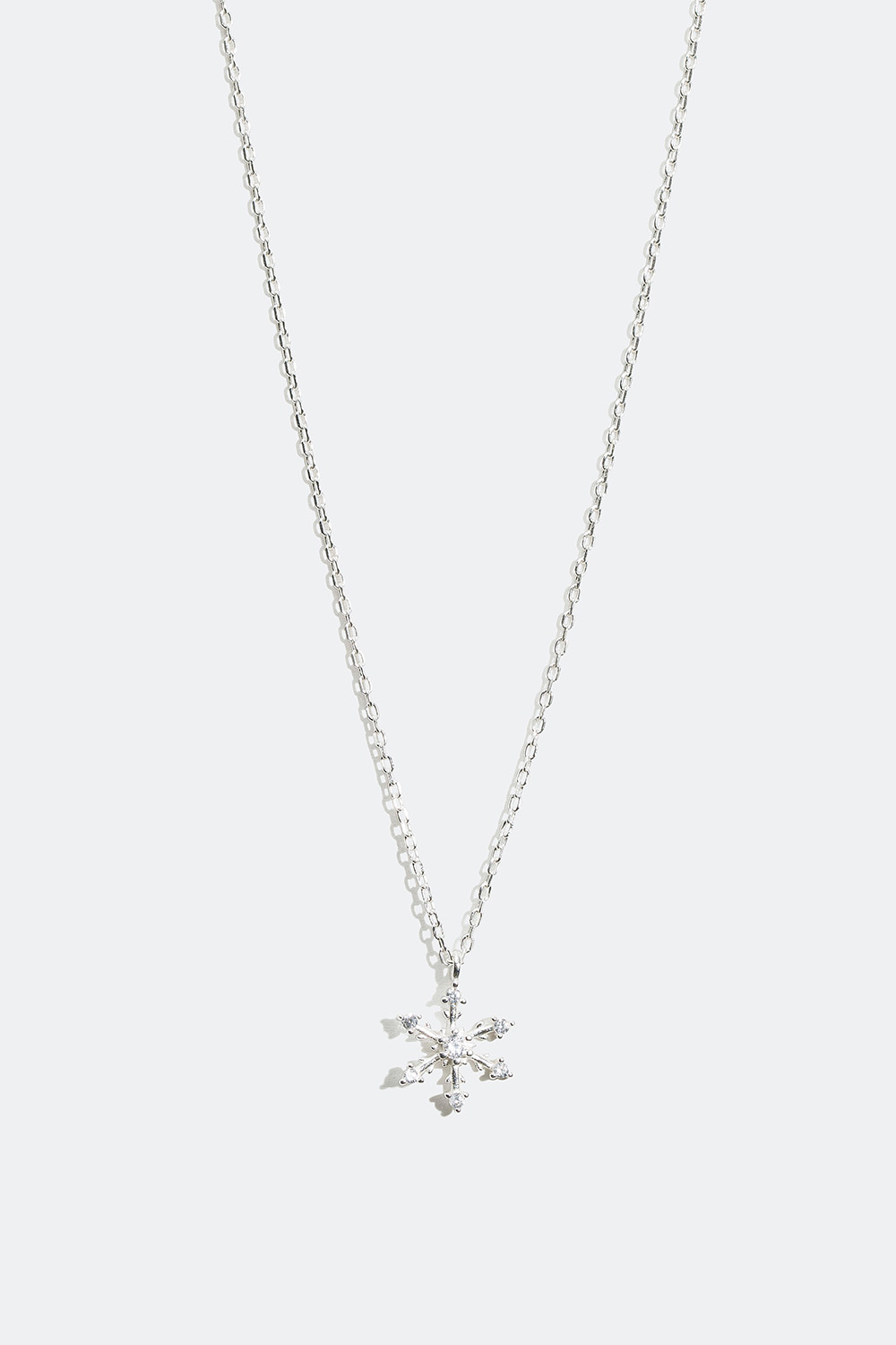 Halskæde i ægte sølv med snefnug dekoreret med sten i kubisk zirkonia.