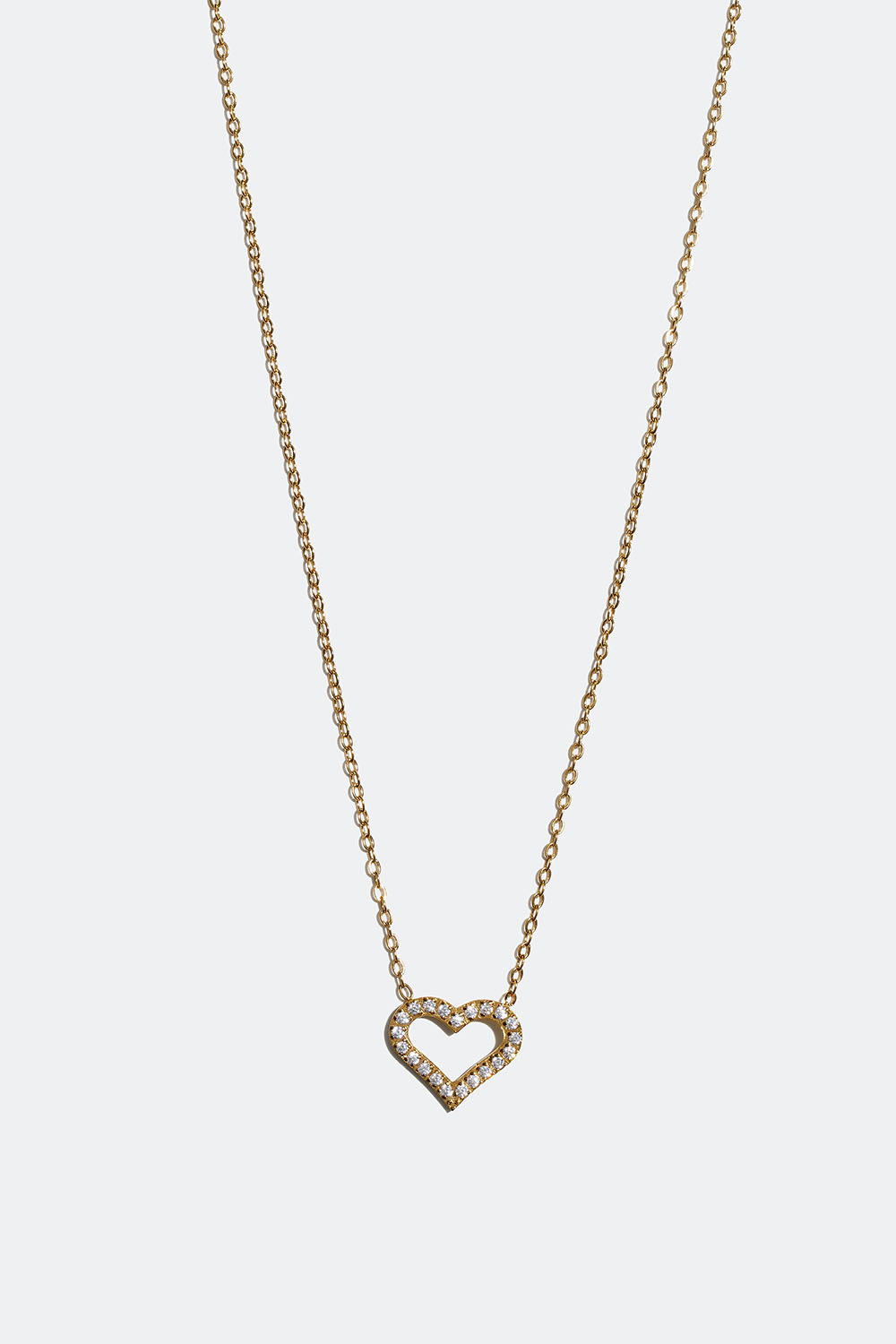 Halskæde i stål med 18 karat guld med hjerte og Cubic Zirconia