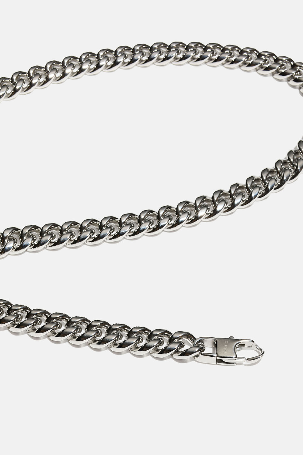 Halskæde med bred rustfri stålkæde. Tidløst smykke lavet i et vandafvisende, allergivenligt og slidstærkt materiale, der holder dem smukke i lang tid. Du kan bade, tage brusebad og træne uden at bekymre dig om, at de mister farven.