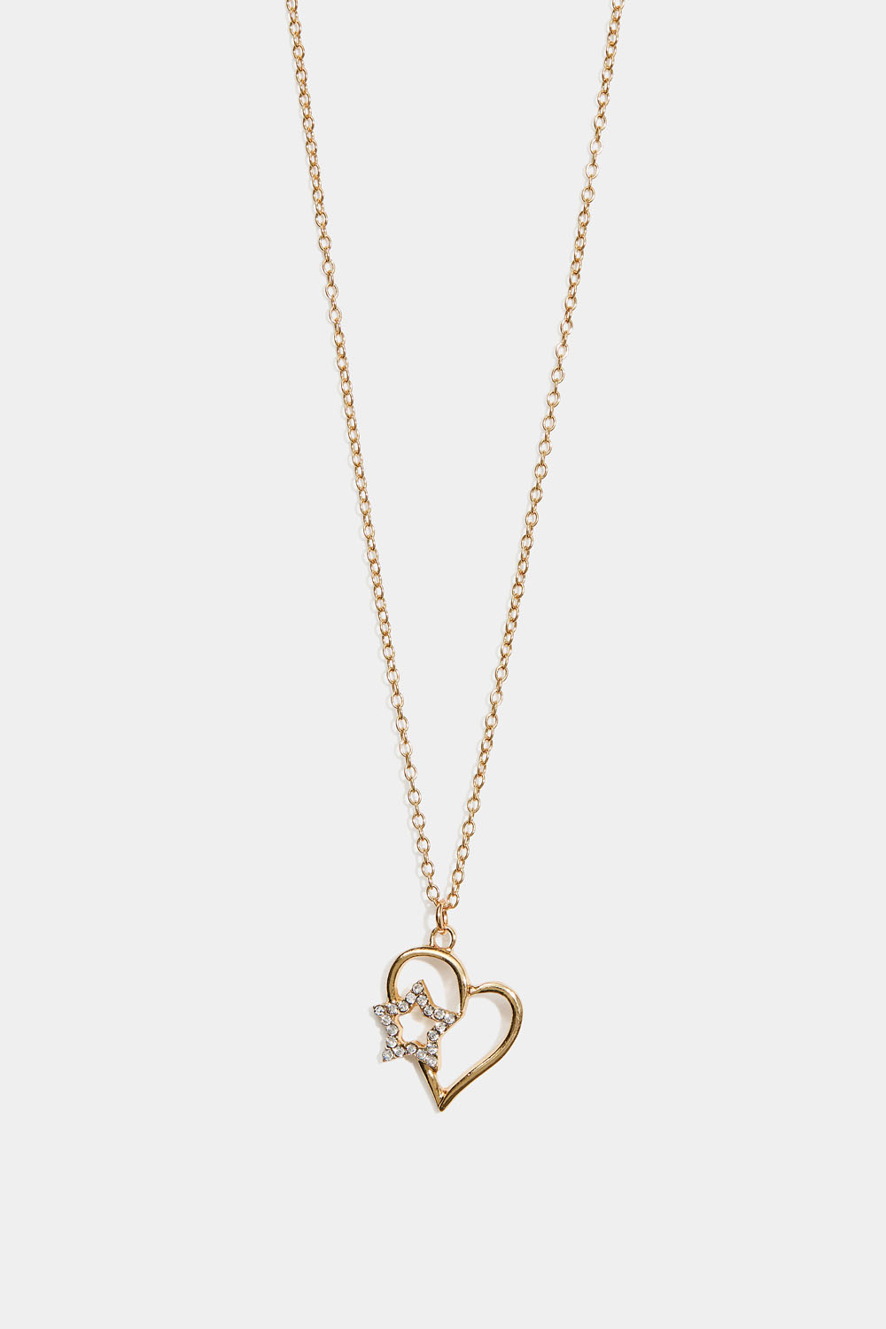 Halskæde i guldfarvet metal til børn med vedhæng i form af et hjerte og en lille stjerne dekoreret med glassten.