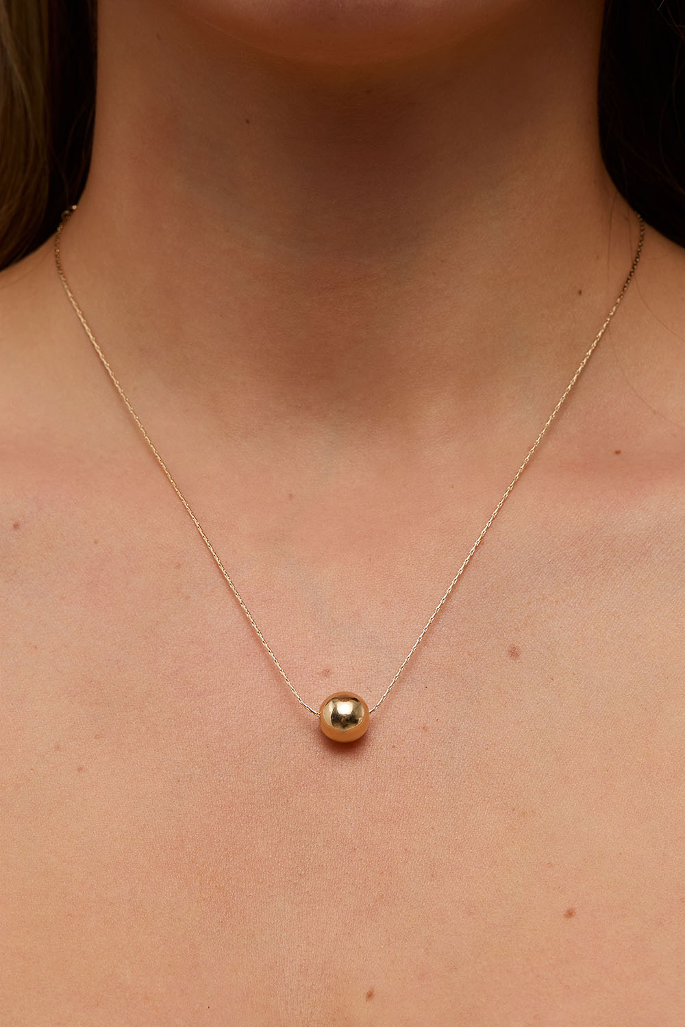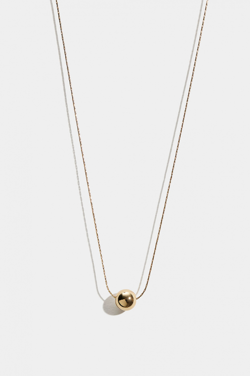 Halskæde med rund kompakt guldfarvet kæde med en gylden kugle