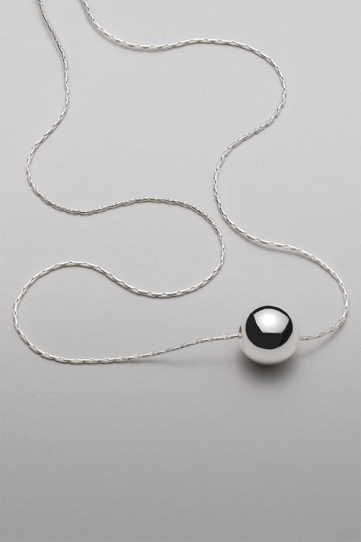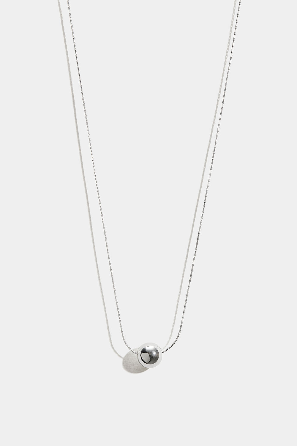 Halskæde med rund kompakt sølvfarvet kæde med en sølvfarvet kugle