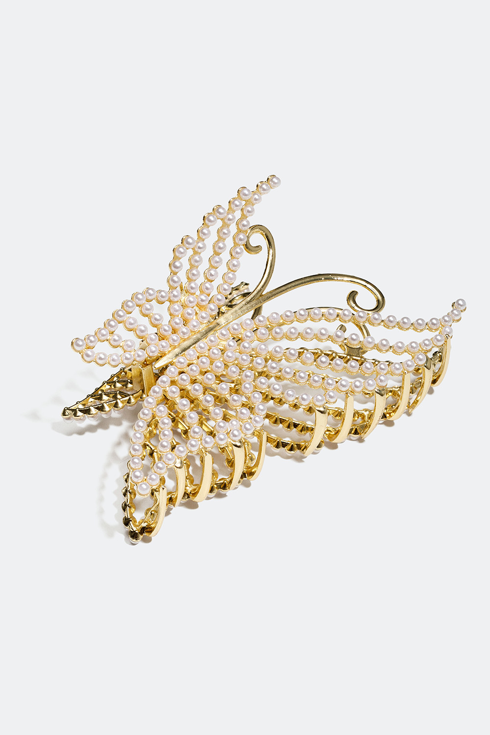 Hårklemme med guldfarvet sommerfugl og perler i gruppen Håraccessories / Spænder & klemmer / Hårklemmer hos Glitter (331001213100)