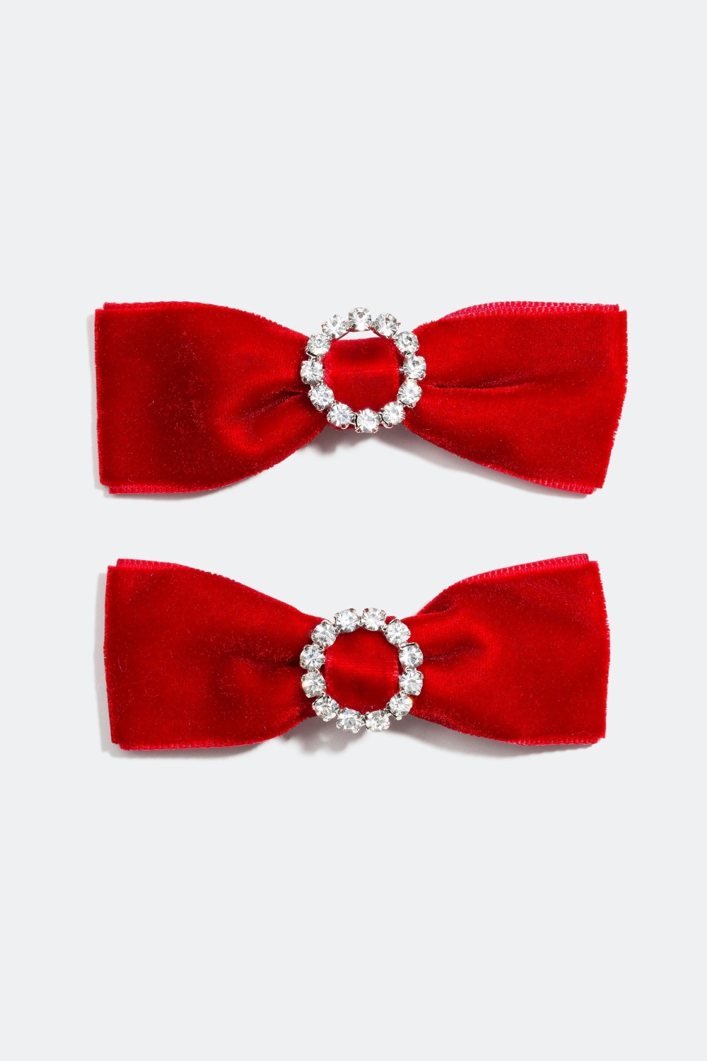 Hårspænder med sløjfer i velour - pakke med to hårspænder med sløjfer i velour. Hårspænderne er pyntet med krystalfarvede glassten.