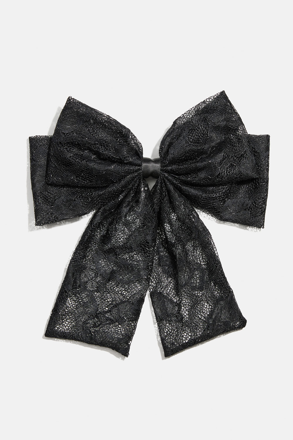 Hårspænde med en stor sort blondesløjfe og små sølvtråde.