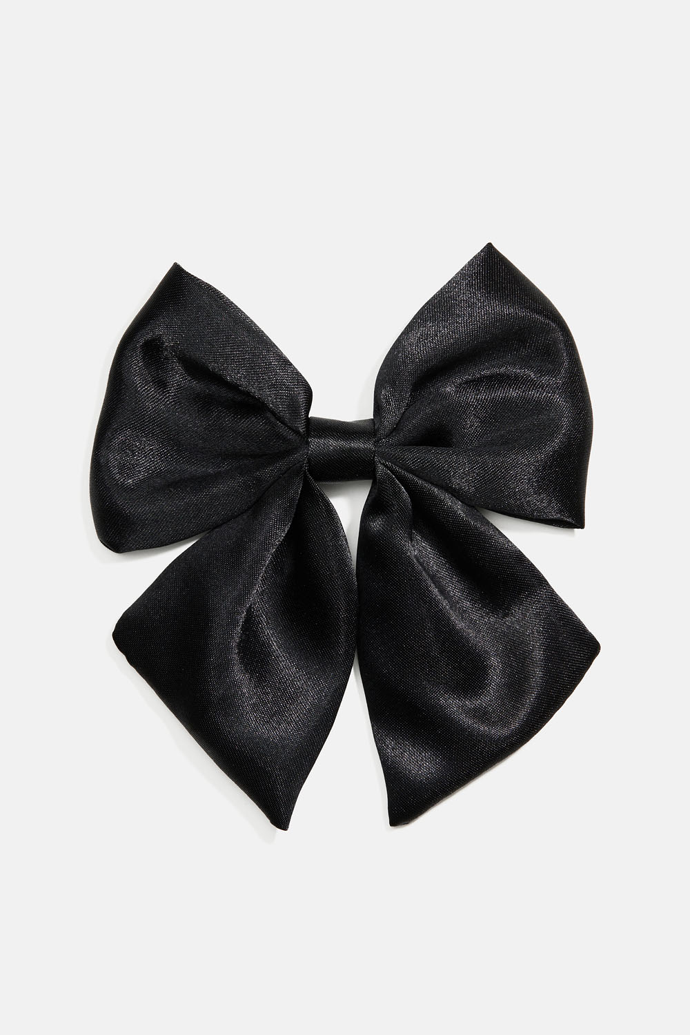 Hårspænde med næbklemme og sløjfe i sort, glansfuldt stof.