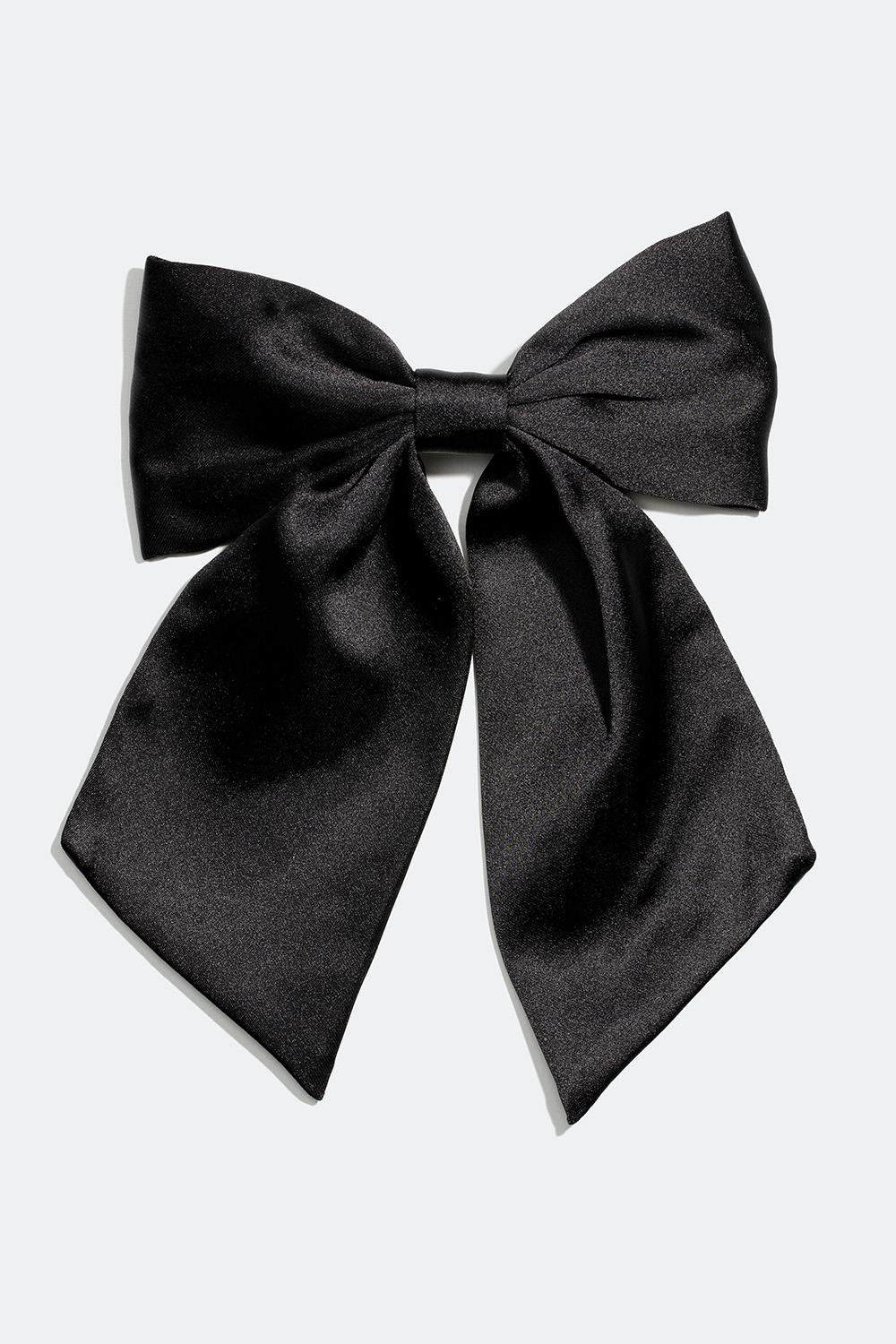 Hårspænde med stor sløjfe i sort imiteret silke. Et dekorativt hårpynt med skinnende stof, der er en fin detalje til din frisure, mens den forsigtigt holder håret på plads. Dette er det perfekte hårpynt til studenterfest, bal og alle sommerens fester og bryllupper.