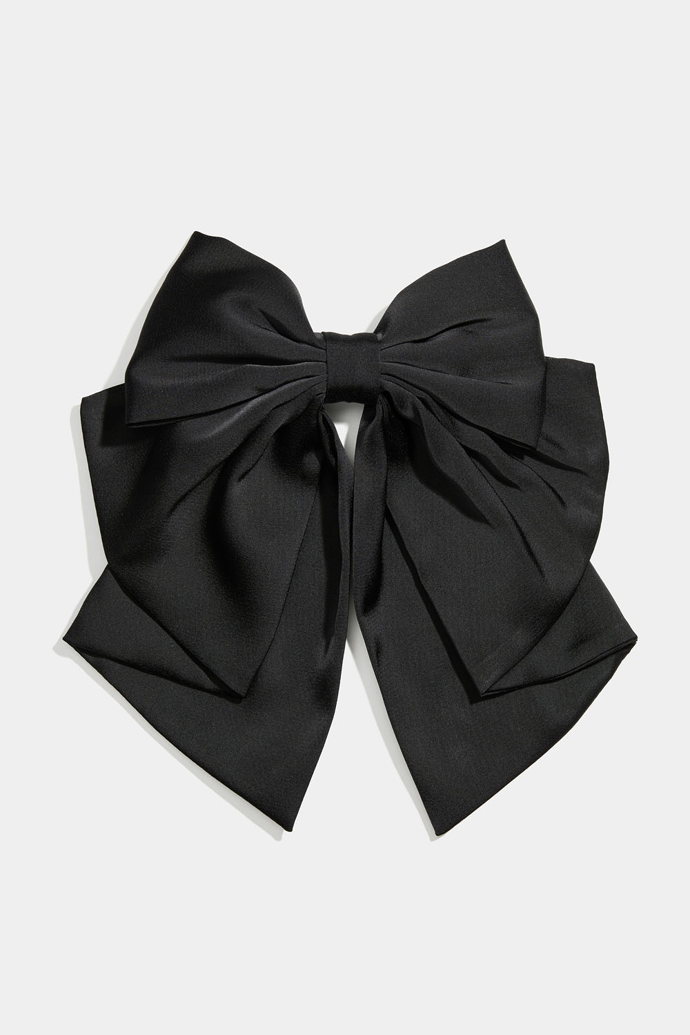 Hårspænde med sløjfe og tail i sort, glansfuldt stof.