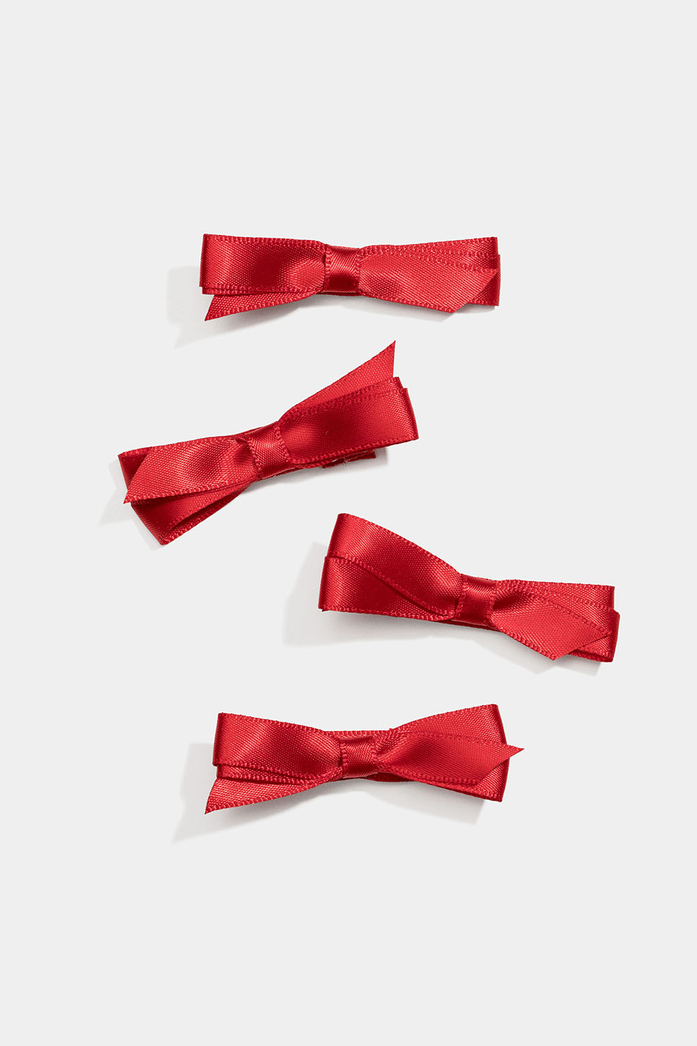 4-pak hårspænder dekoreret med små røde sløjfer i imiteret silke