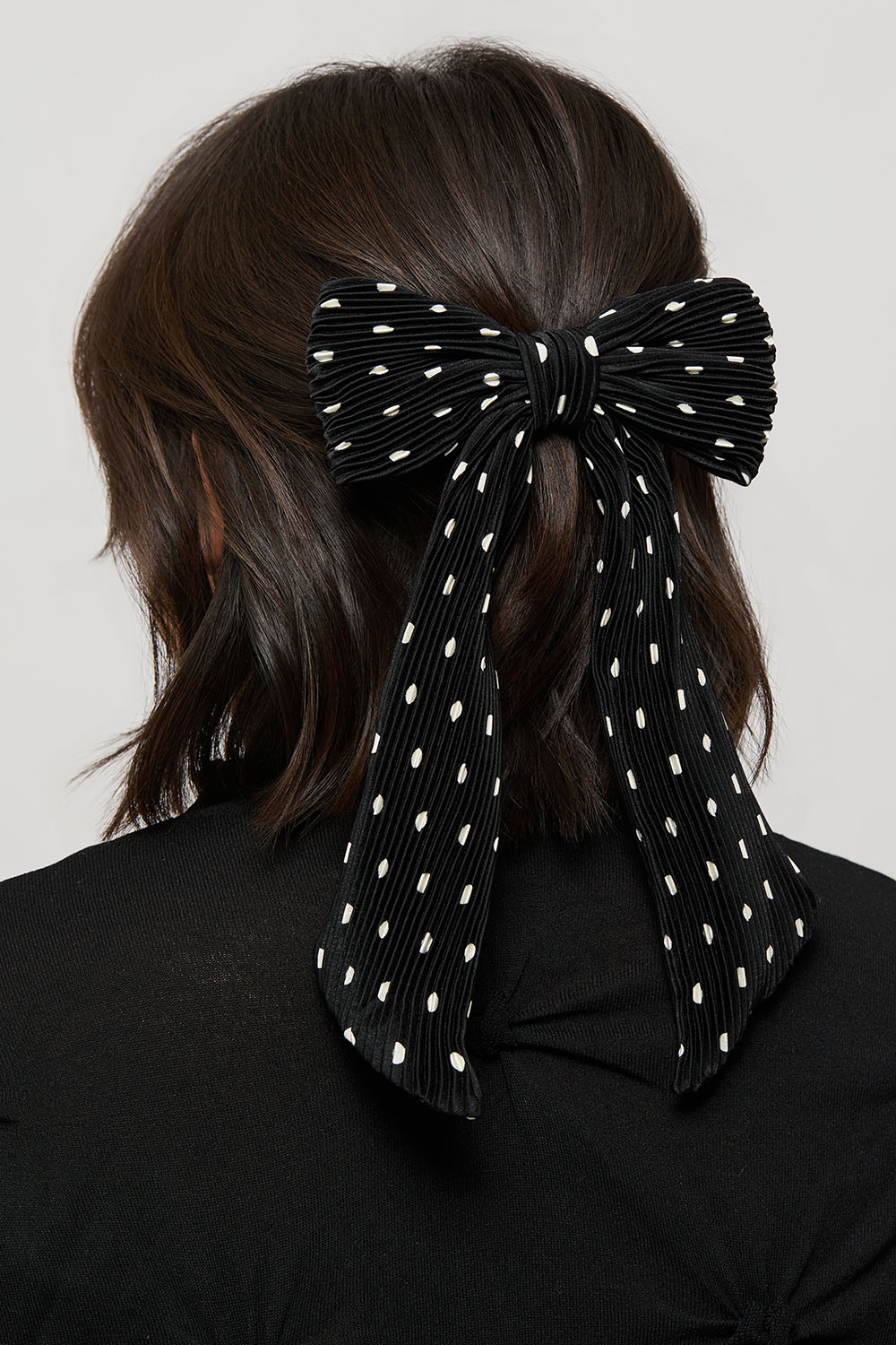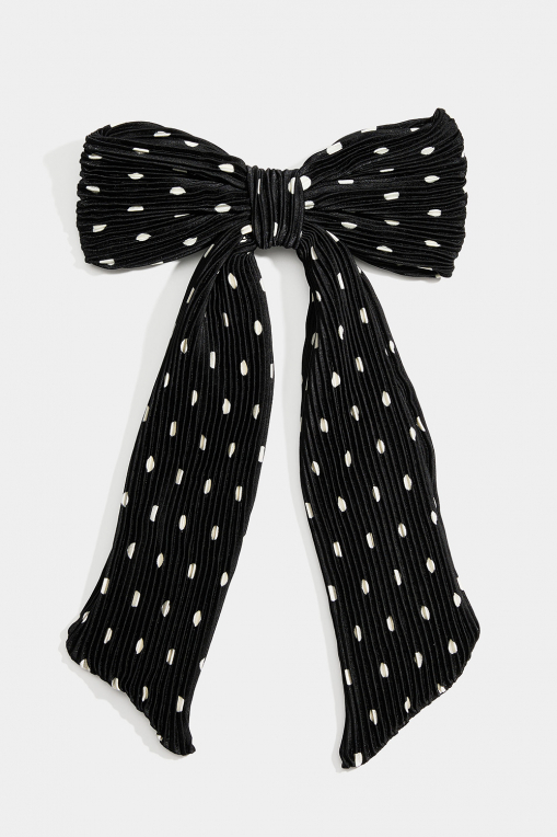 Hårspænde med sort plisseret sløjfe med prikker