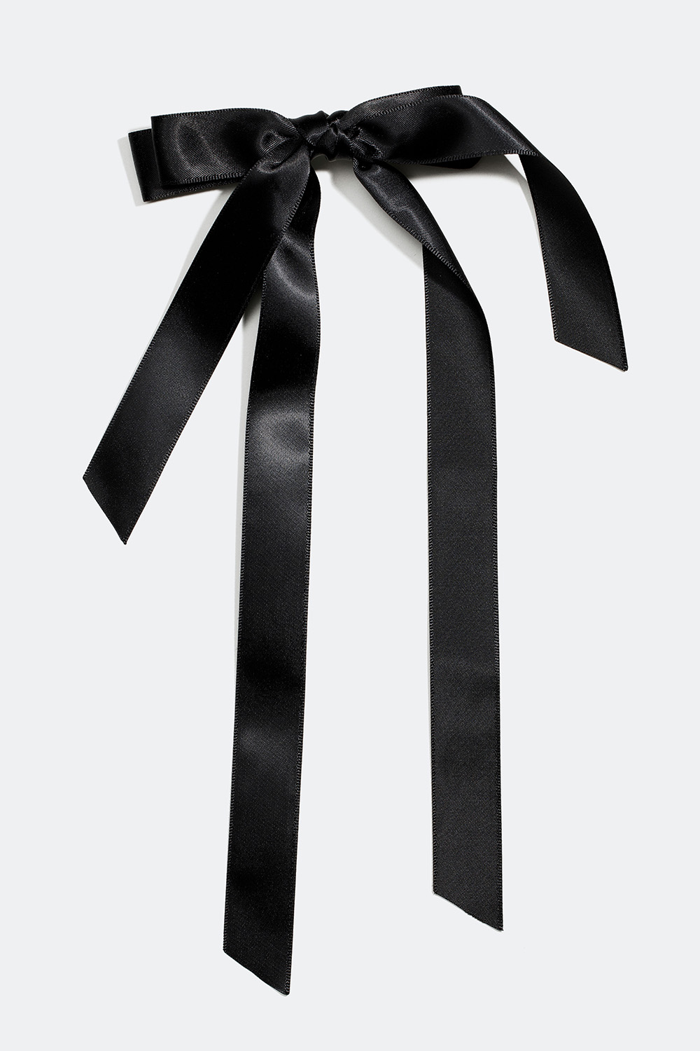 Hårspænde med en sort sløjfe i imiteret silke med lange bånd. Et dekorativt hårspænde, der er perfekt til f.eks. en flot halv opsætning.