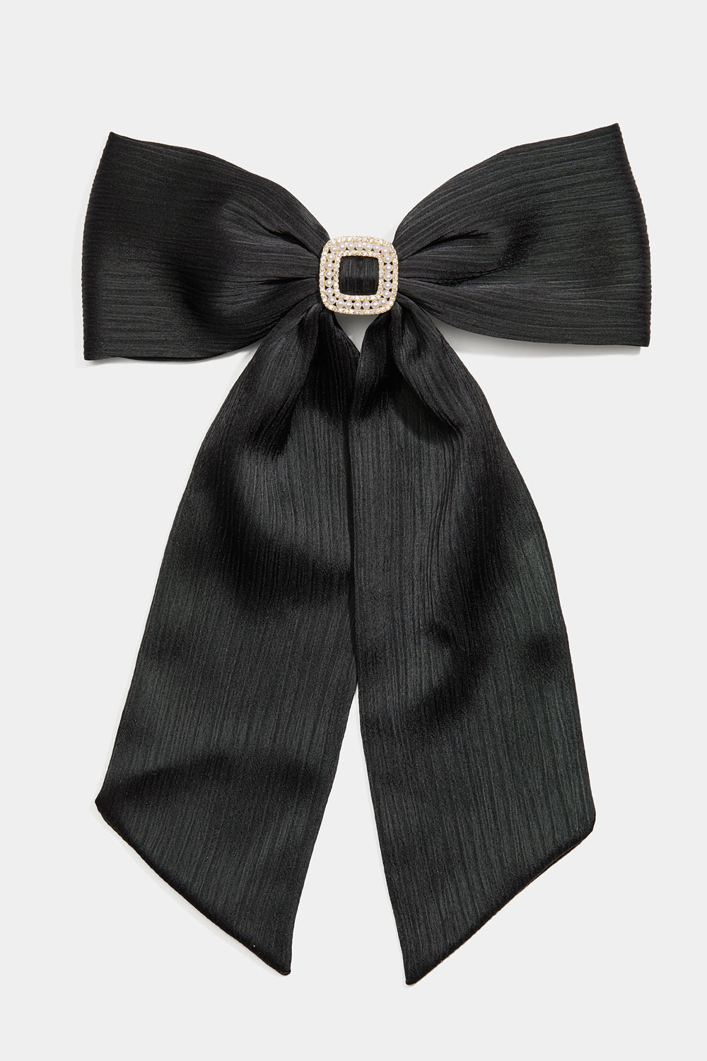Hårspænde med sort sløjfe og rhinstenspynt i gruppen Håraccessories / Spænder & klemmer / Hårspænder hos Glitter (335001979000)