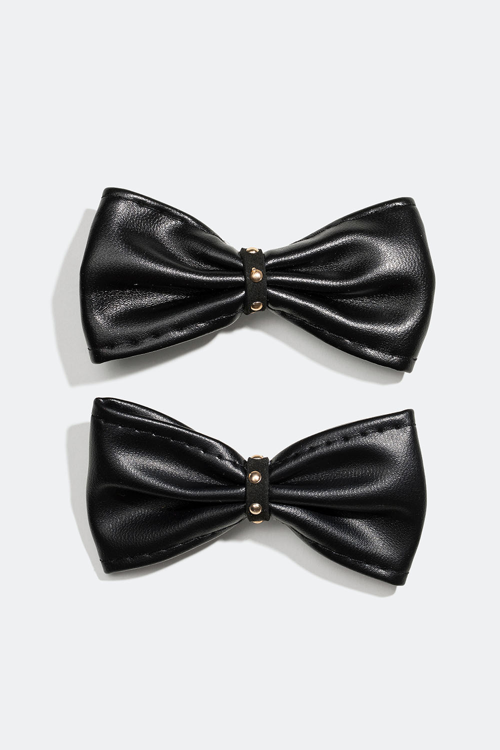 Hårspænde med sorte sløjfer i imiteret læder, 2-pak