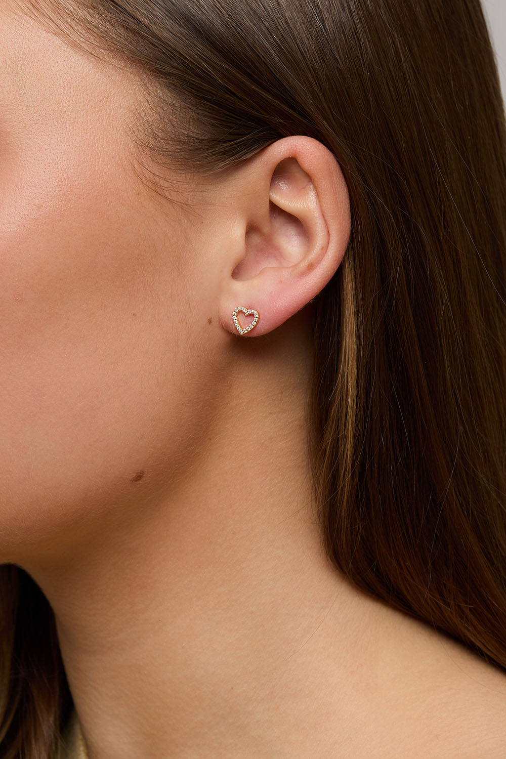 Hjerteformede ørestikker i 18 karat forgyldt sterlingsølv dekoreret med små kubisk zirkonia-sten.