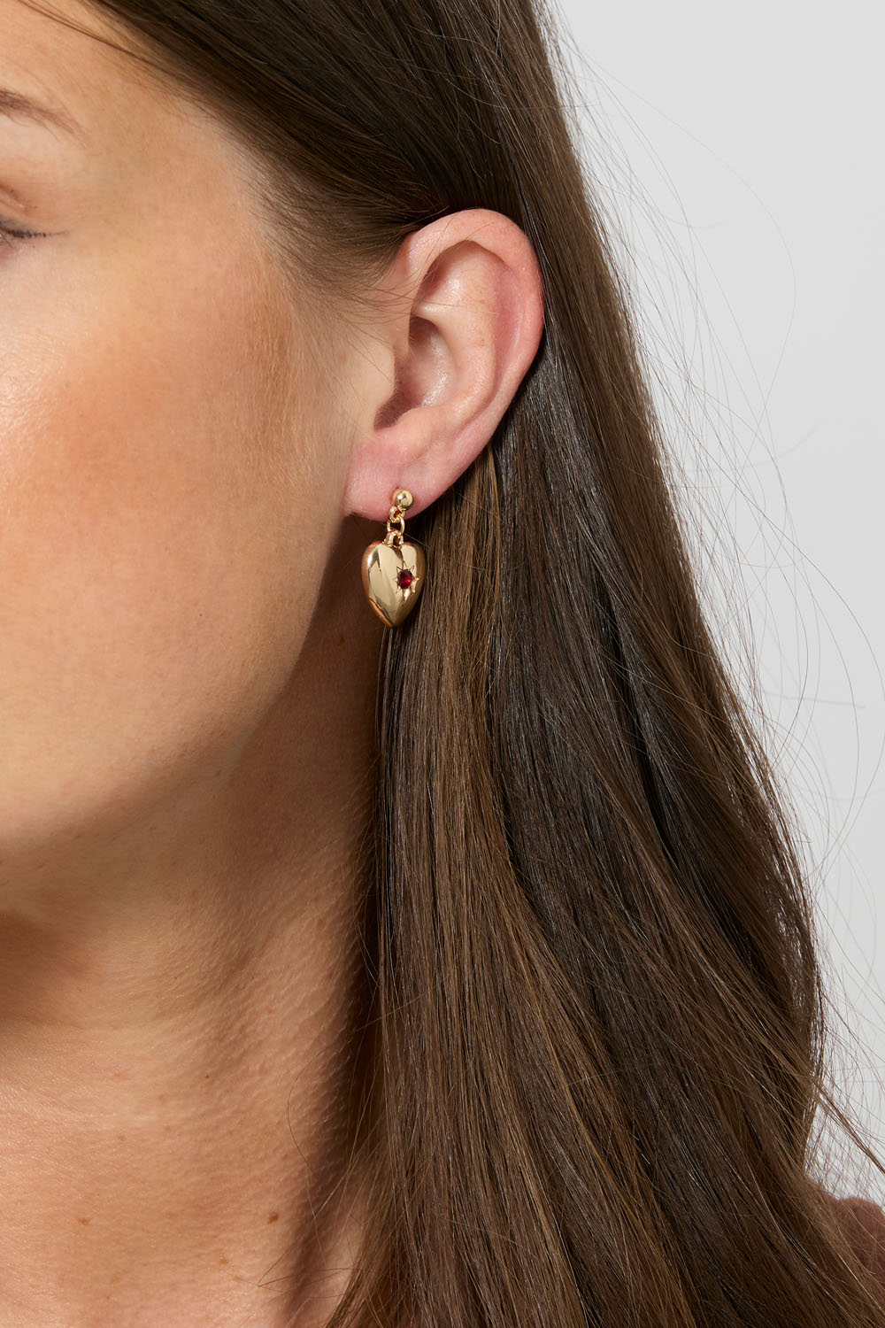 Øreringe med hængende hjerter, dekoreret med en stjerne og en lille hvid sten