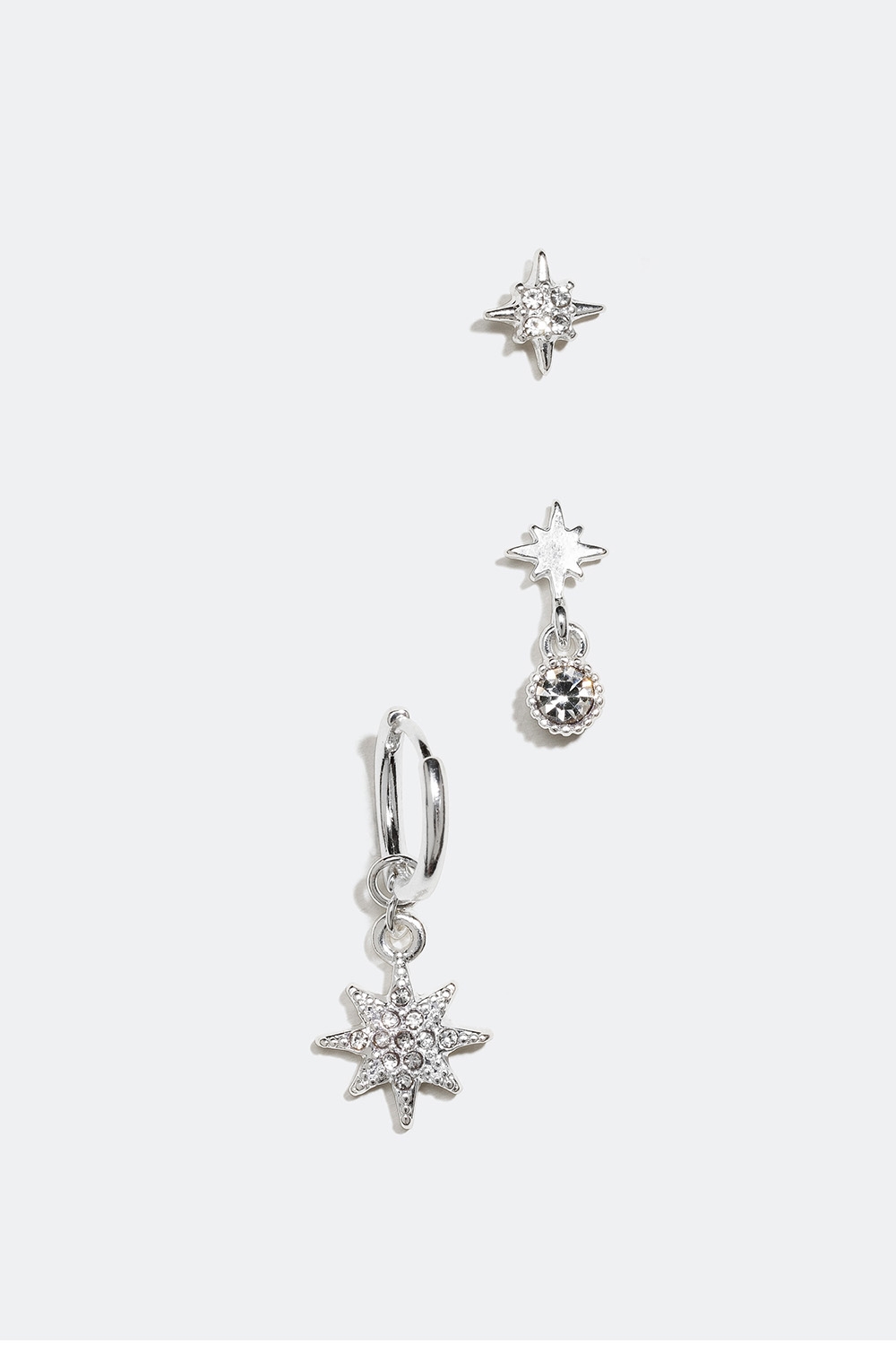 Hoop og ørestikker med stjerner, 3-pak i gruppen Smykker / Øreringe / Flerpak hos Glitter (25300183)