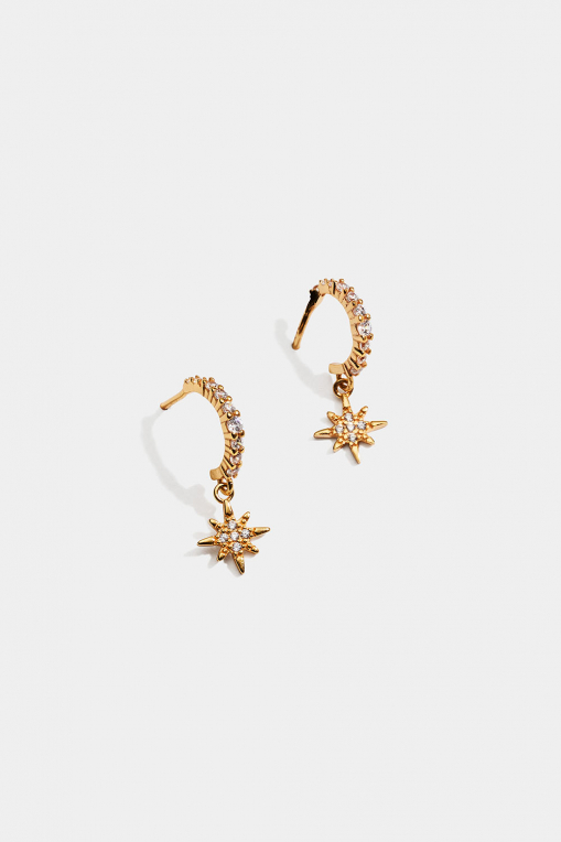 Hoops i 18k guldbelagt ægte sølv med små hængende stjerner og kubisk zirkonia-sten