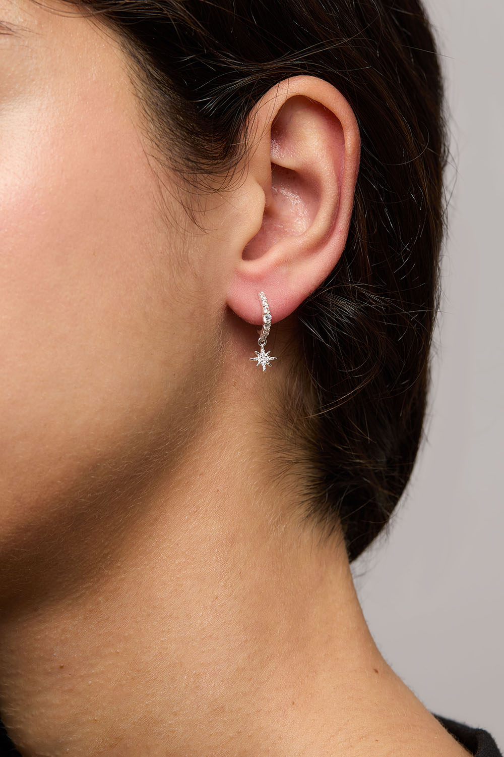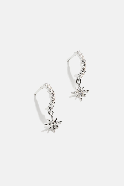 Hoops i ægte sølv med små hængende stjerner og kubisk zirkonia