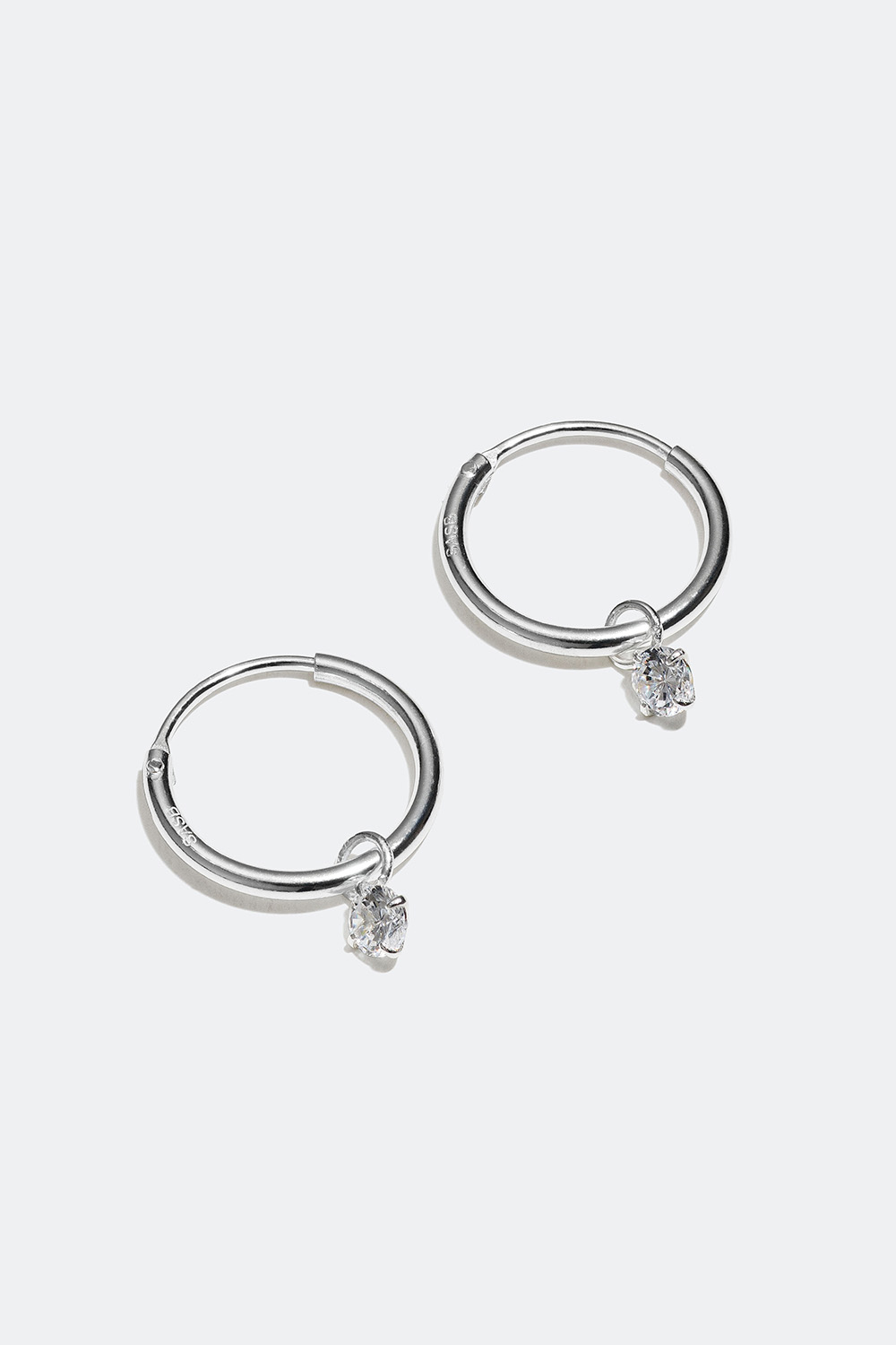 Hoops med glassten i ægte sølv, 1 cm i gruppen Ægte sølv / Sølvøreringe / Hoops i ægte sølv hos Glitter (553002371001)