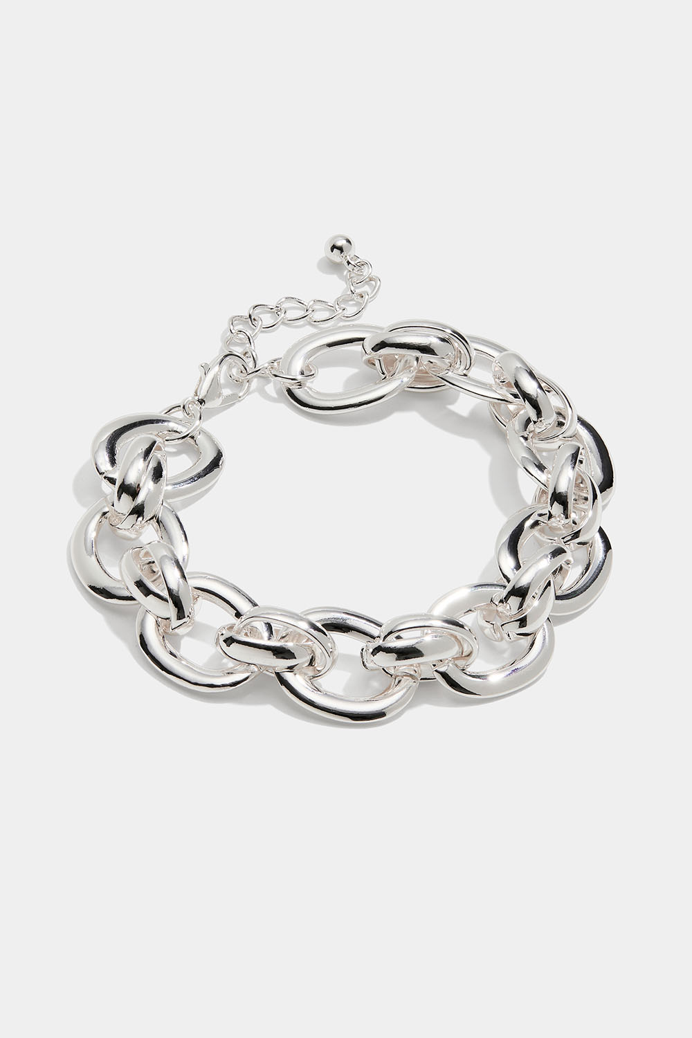 Sølvfarvet kædearmbånd med større, ovale, flade led.