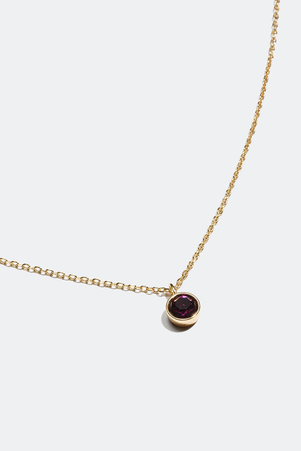 Halskæde med tynd kæde i ægte sølv forgyldt med 18 karat guld og vedhæng med månedsstensfarvet sten i kubisk zirkonia. En stilren halskæde med dekorative detaljer, der passer til enhver lejlighed. Kan kombineres med flere af vores vedhæng, eksempelvis bogstaver, så dit smykke bliver mere personligt. Et populært smykke, der også er perfekt som gave.