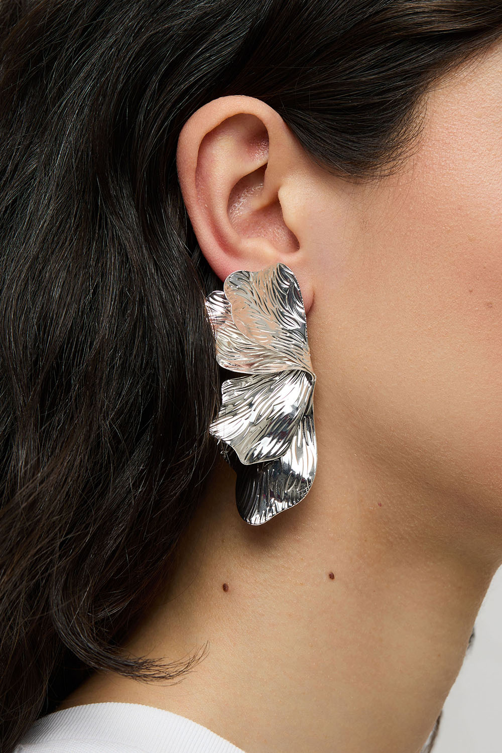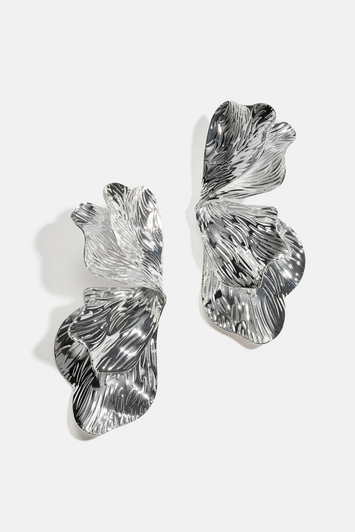 Store blomsterbladformede øreringe i metal med rillet design. Perfekt til dig, der ikke har hul i ørerne.