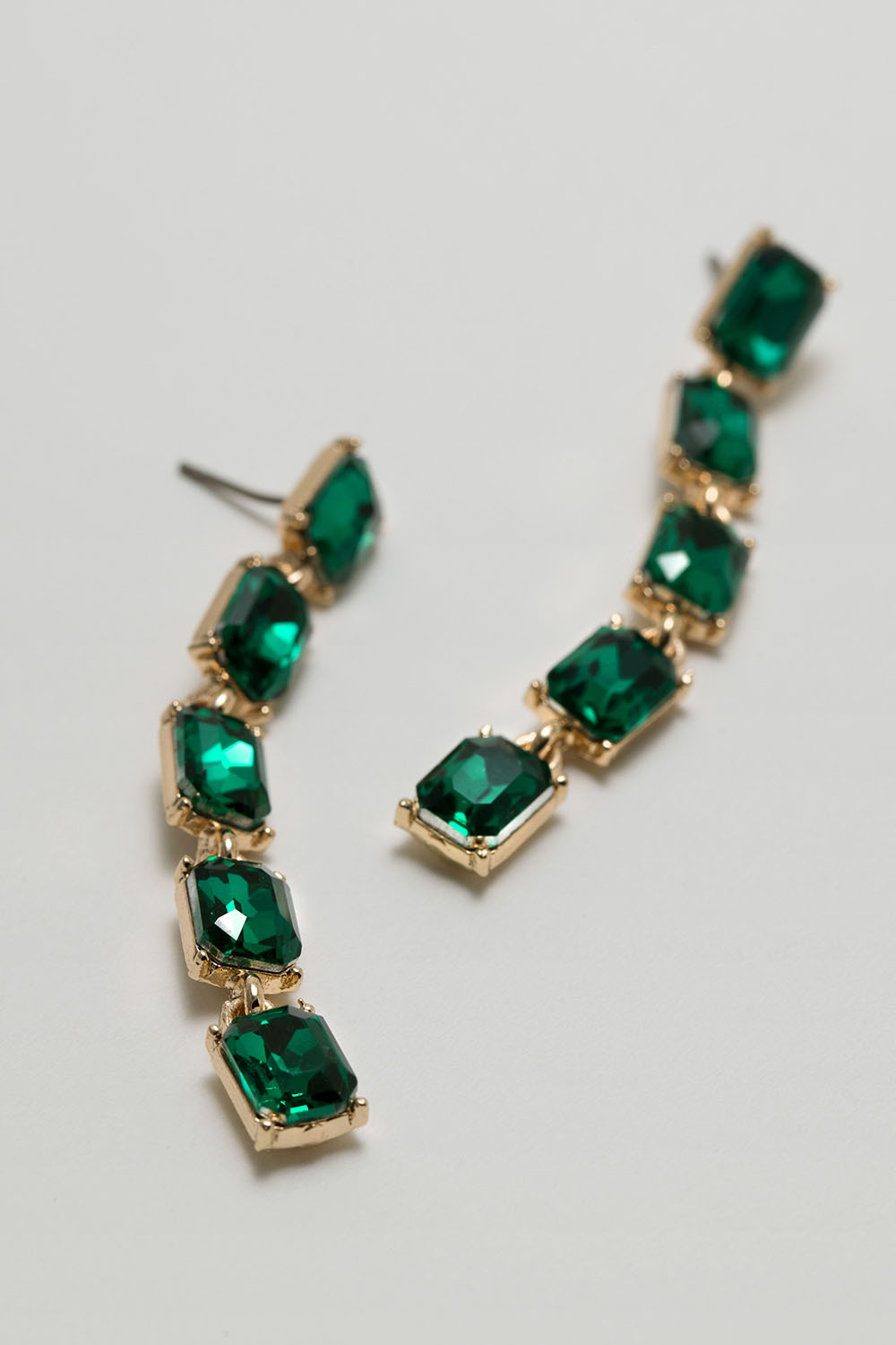 Lange guldfarvede øreringe med grønne glassten i gruppen Smykker / Øreringe / Similiøreringe hos Glitter (253007747502)