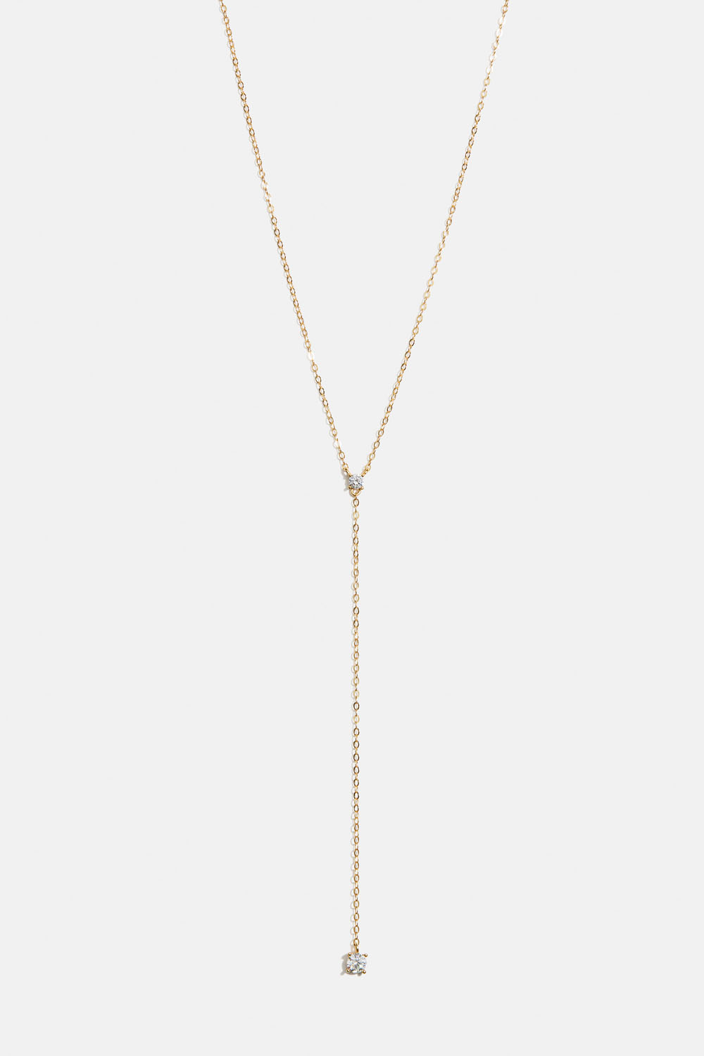 Lariat-halskæde i 18k forgyldt ægte sølv med to sten i kubisk zirkonia.